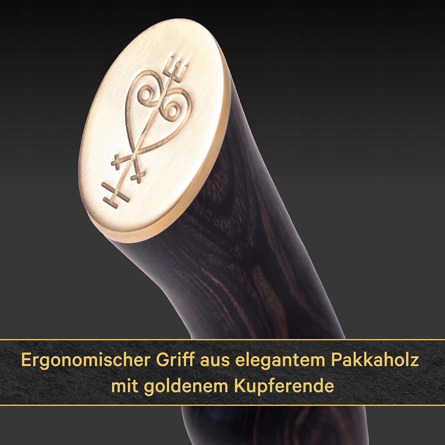Ergonomiczna rączka z eleganckiego drewna Pakkaholz z złotym miedzianym końcem