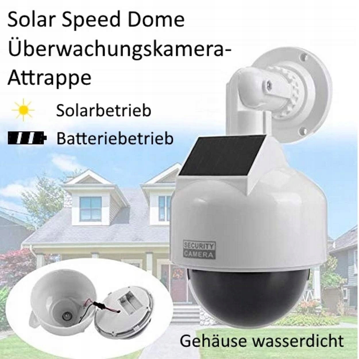 O&W Security 2X Dummy-Kamera Speed Dome Solar Kamera-atrapa z fałszywym obiektywem i czerwonym światłem LED, wodoodporna do użytku wewnętrznego i zewnętrznego