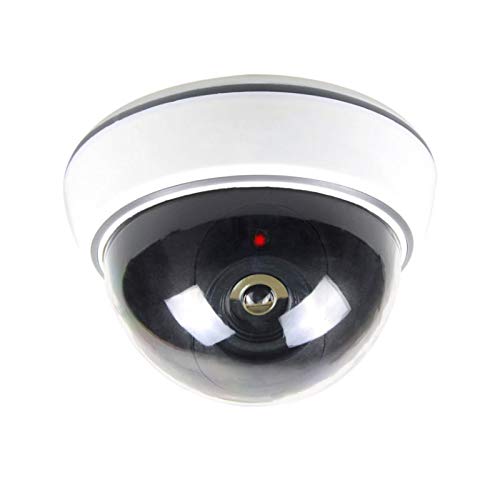 Zestaw 4 sztuk atrap kamer kopułkowych O&W Security – atrapa kamery monitoringu z obiektywem i migającą diodą LED, 25 diod IR (optyka), wodoodporna, Ø 9,5 cm/W 6,8 cm, do użytku wewnętrznego i zewnętrznego, materiał montażowy