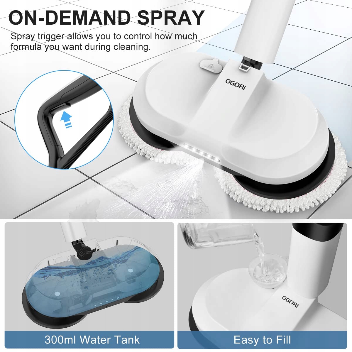 OGORI Bezprzewodowy Mop Elektryczny Z Funkcją Spryskiwania LED 300ml