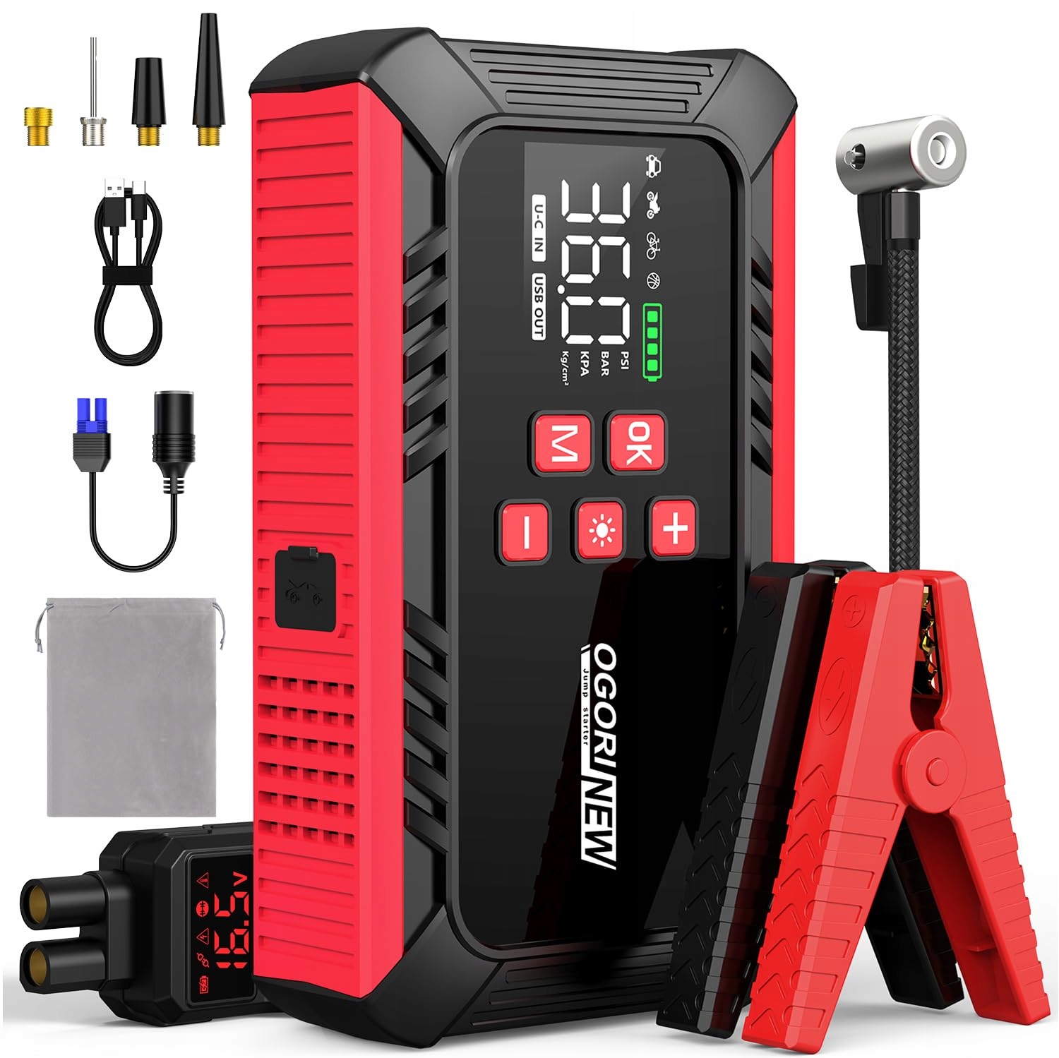 OGORI Nowa Powerbanka Rozruchowa 7000A z Kompresorem 150PSI 12V LED Latarka
