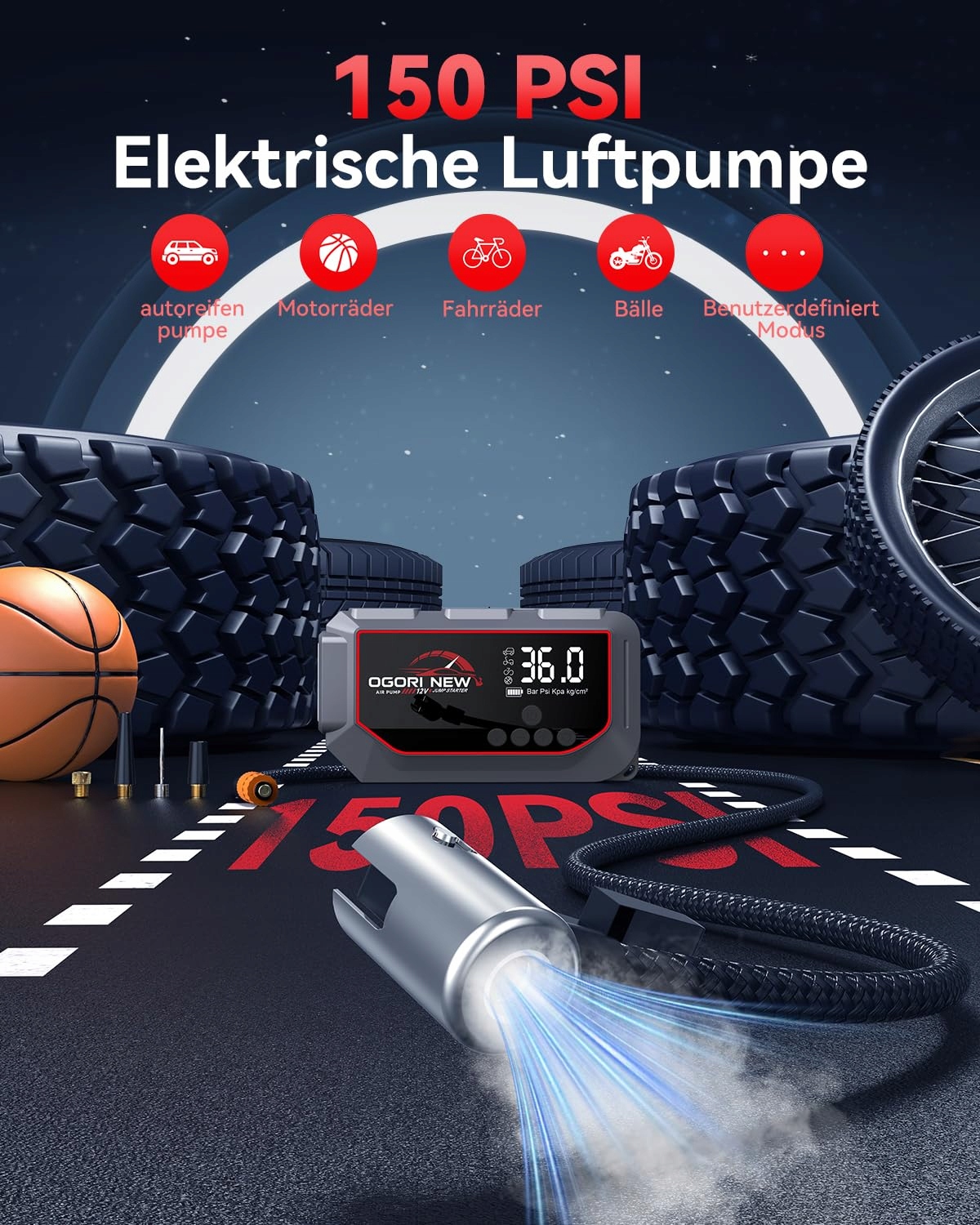 OGORI Powerbank Rozruchowa 7000A z Kompresorem 150PSI i Latarką LED | Premium Supply