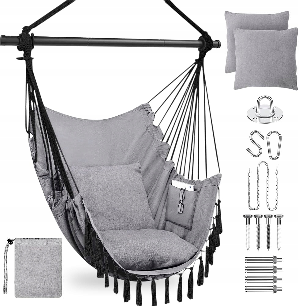 Ogrodowy Fotel Wiszący z 2 Poduszkami i Torbą dla Dzieci i Dorosłych | Premium Supply