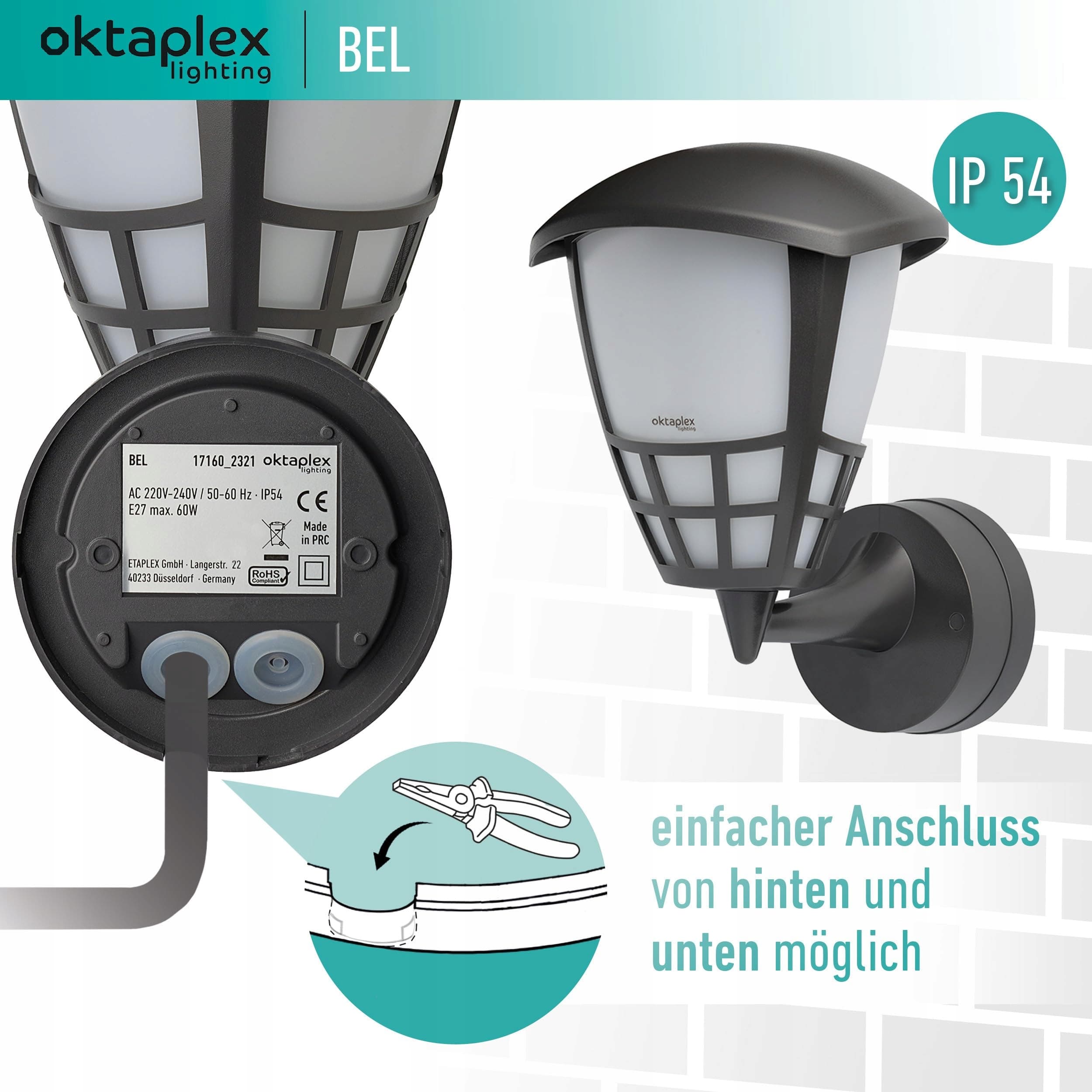 Lampa ścienna zewnętrzna antracyt może być sterowana w połączeniu z Bel Motion. Alternatywnie można również zrealizować automatyczne oświetlenie za pomocą czujników ruchu i zmierzchu Oktaplex.