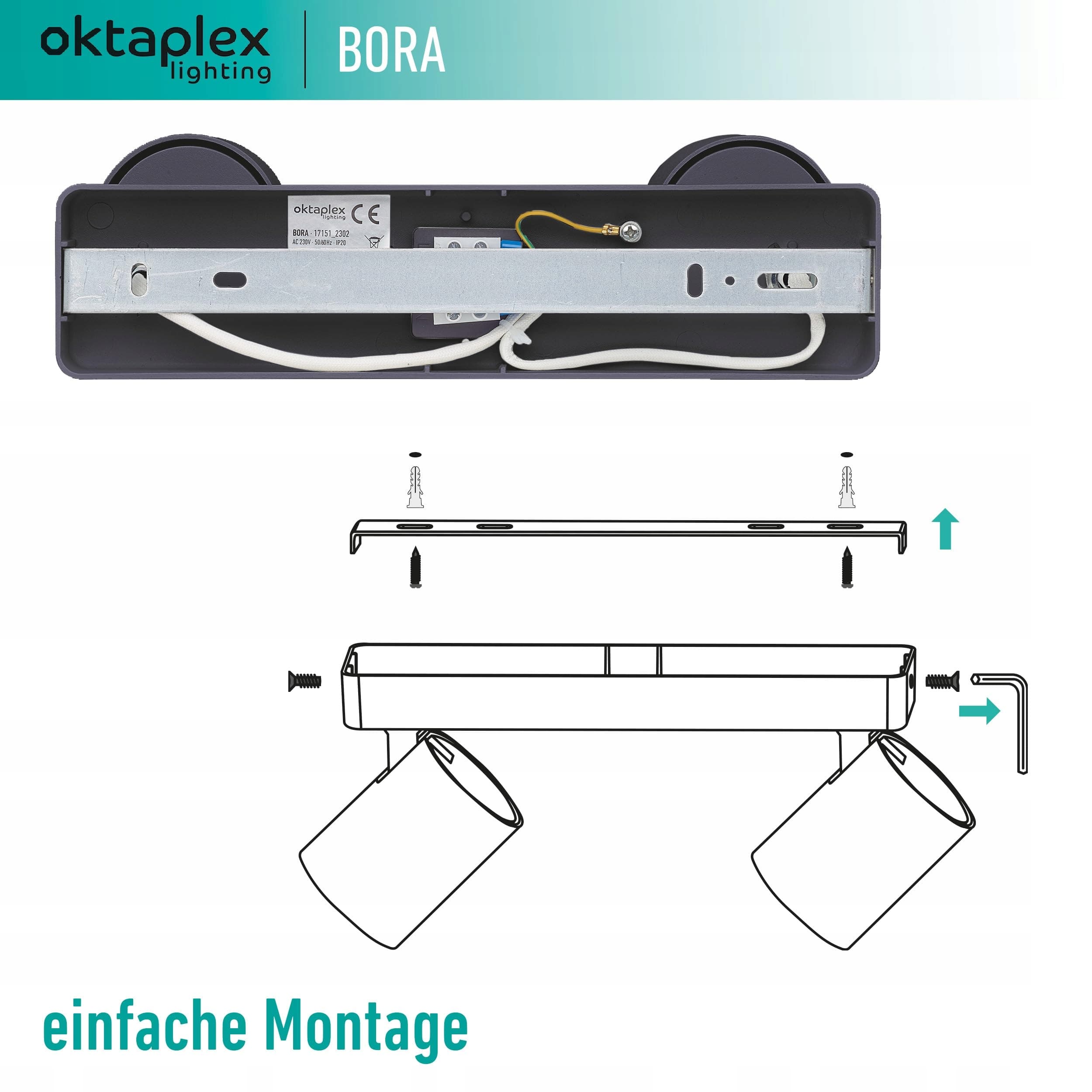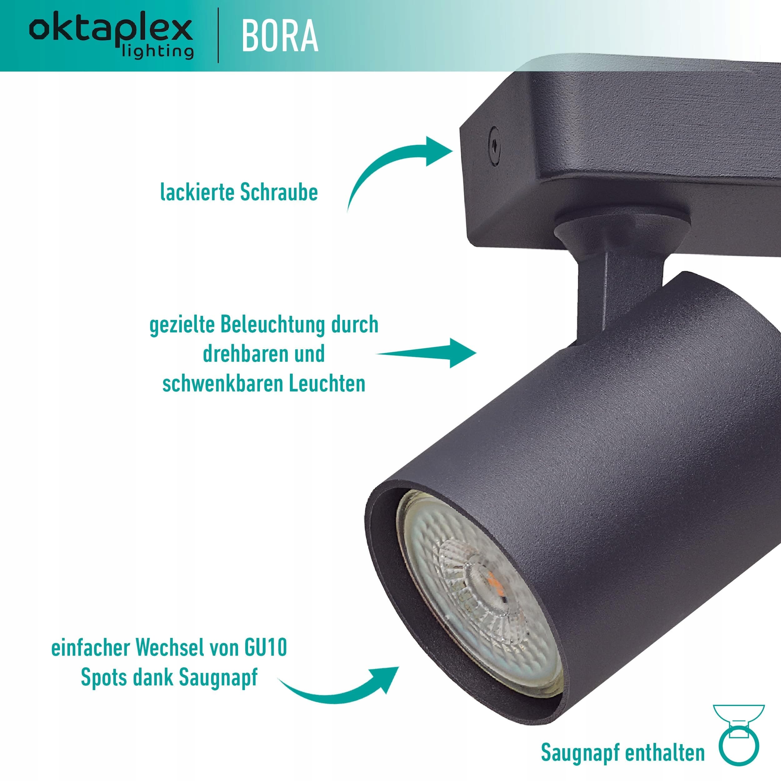 Oktaplex Bora reflektor sufitowy 2-płomieniowy GU10 LED belka reflektorowa 25 cm 230V lampa punktowa obrotowa reflektor sufitowy czarny