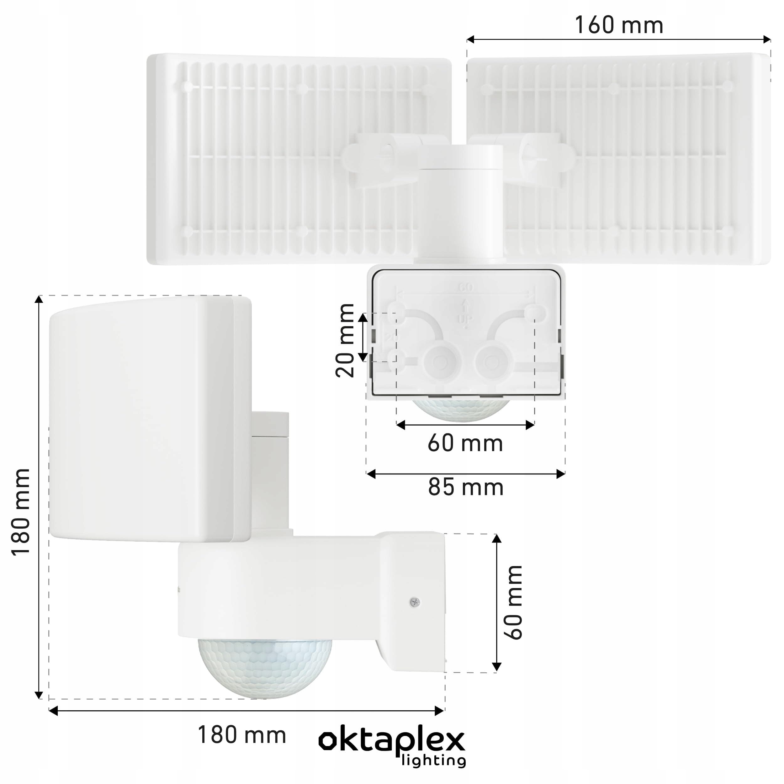 OKTAPLEX Cali Dos LED Reflektor Z Czujnikiem Ruchu 40W IP65 Biały | Premium Supply