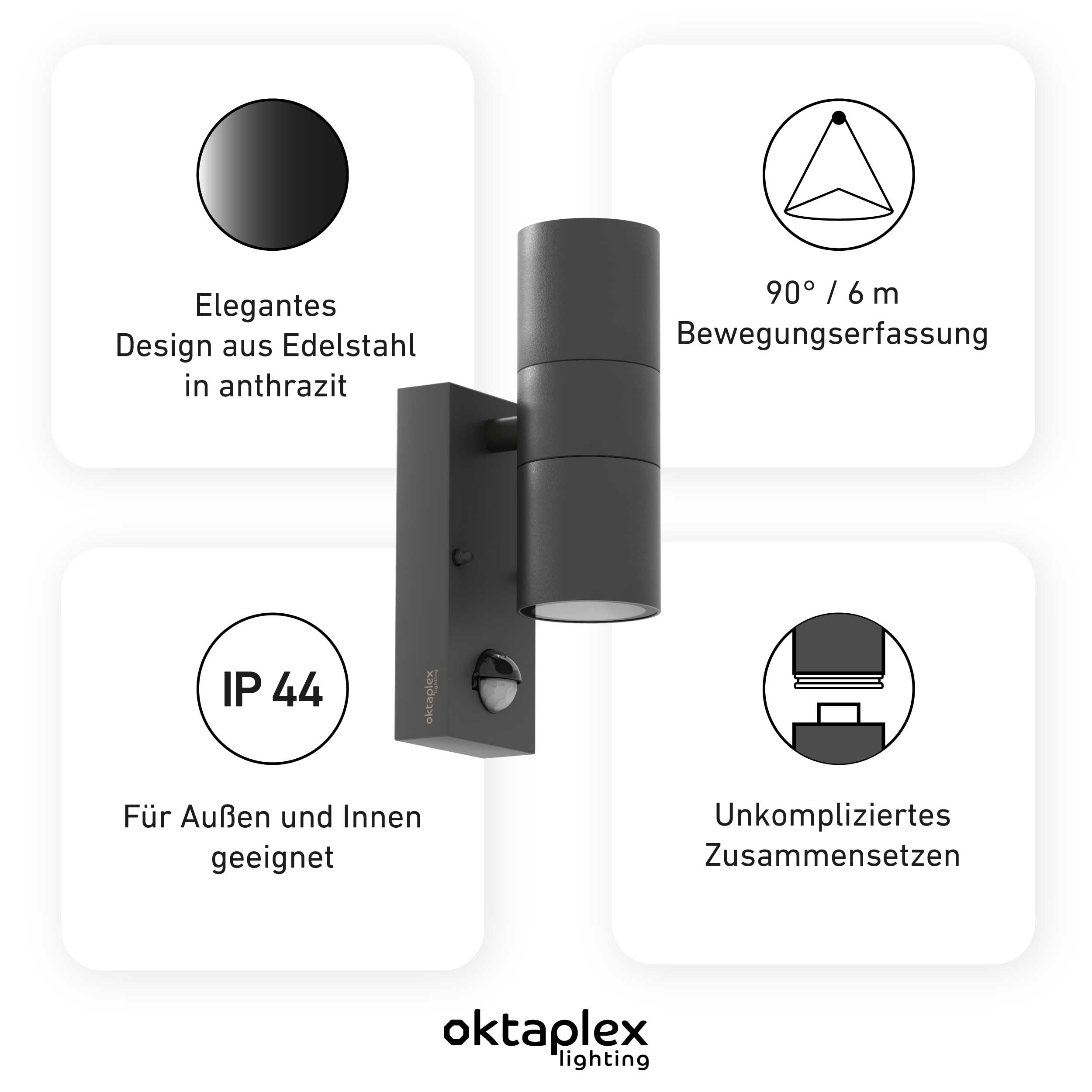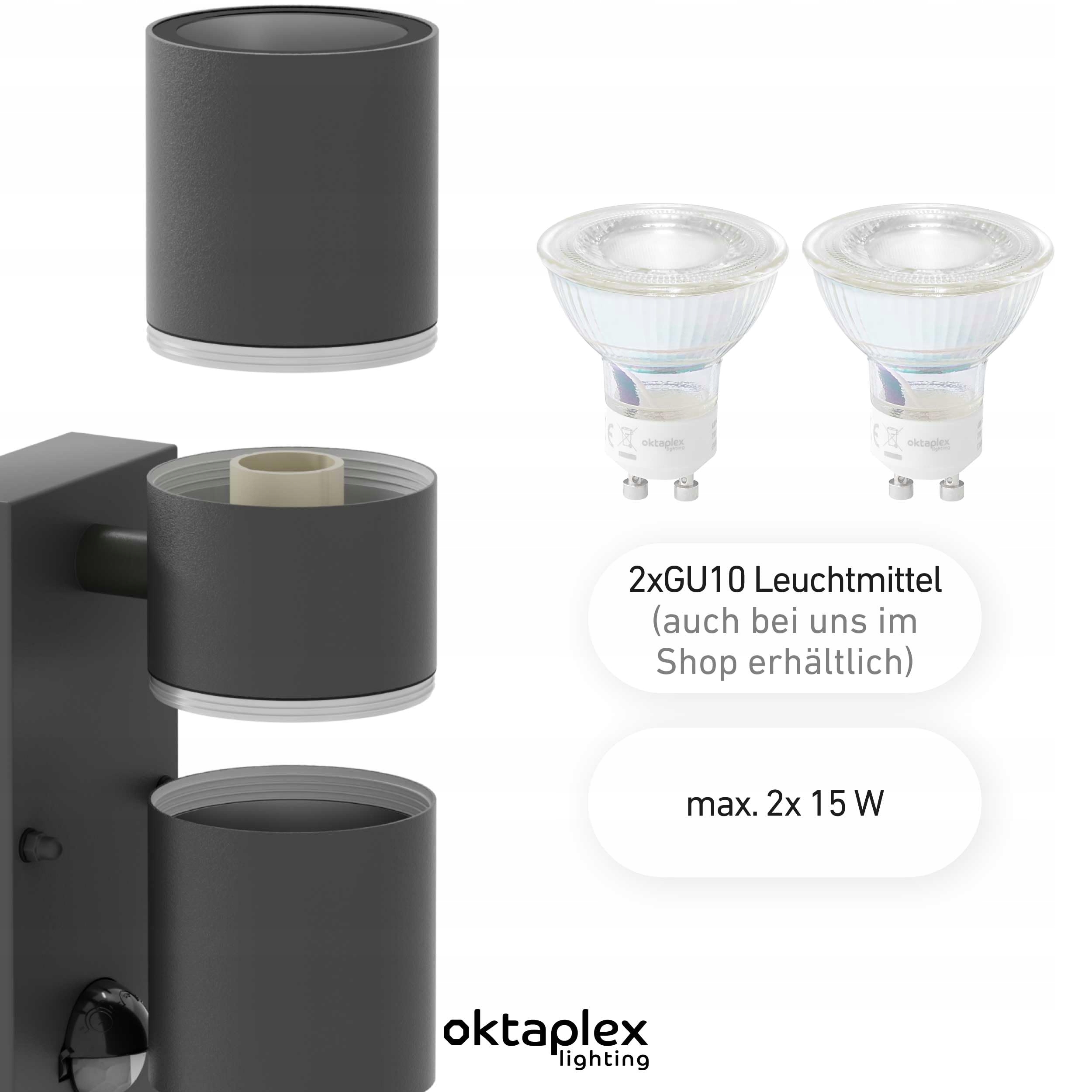 Oktaplex Chile lampa zewnętrzna ze stali nierdzewnej z czujnikiem ruchu z 2x oprawką GU10 Lampa zewnętrzna IP44 antracyt 230V kinkiet oświetlenie zewnętrzne