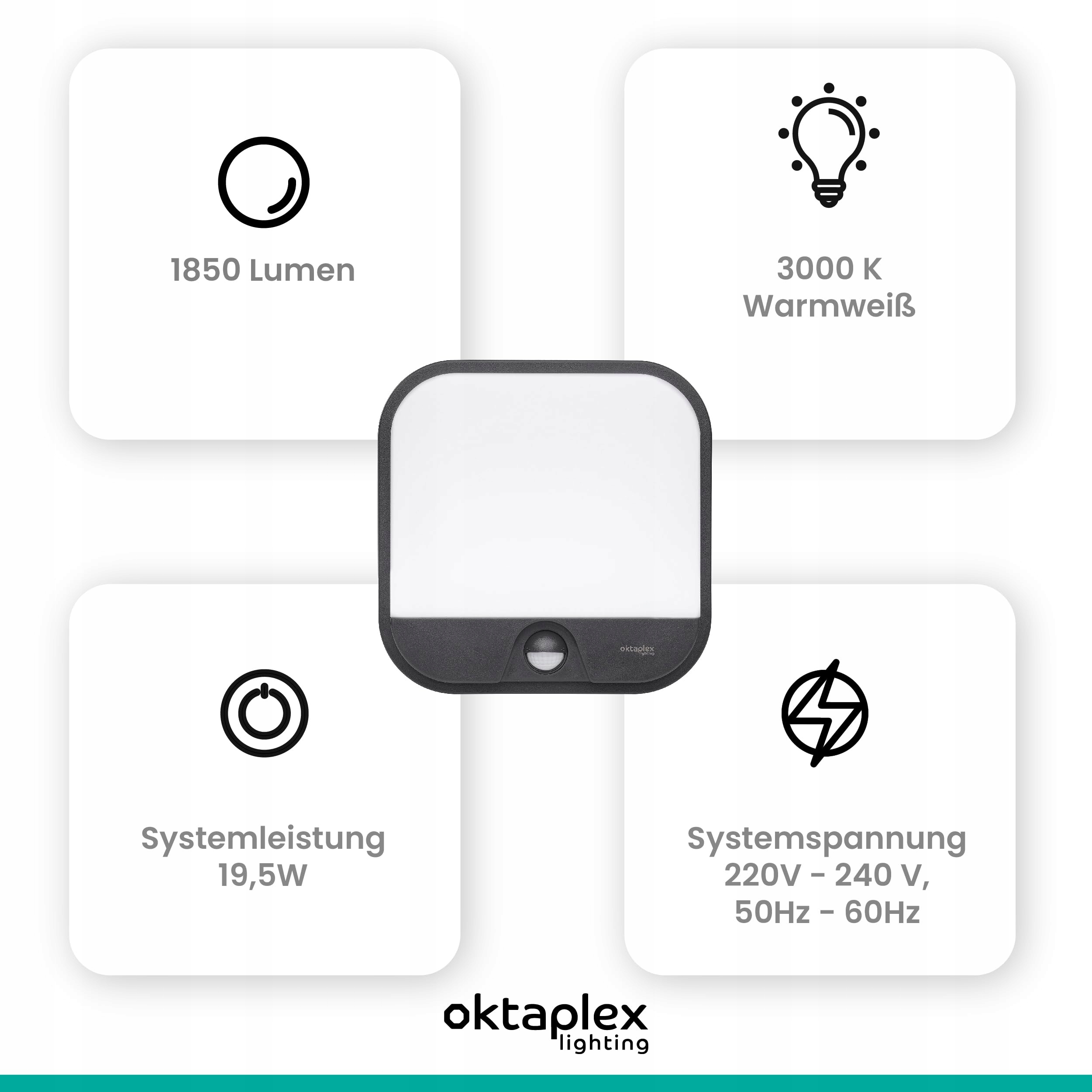 OKTAPLEX Lampa Zewnętrzna Z Czujnikiem Ruchu LED IP54 3000K 1850lm 19,5W | Premium Supply