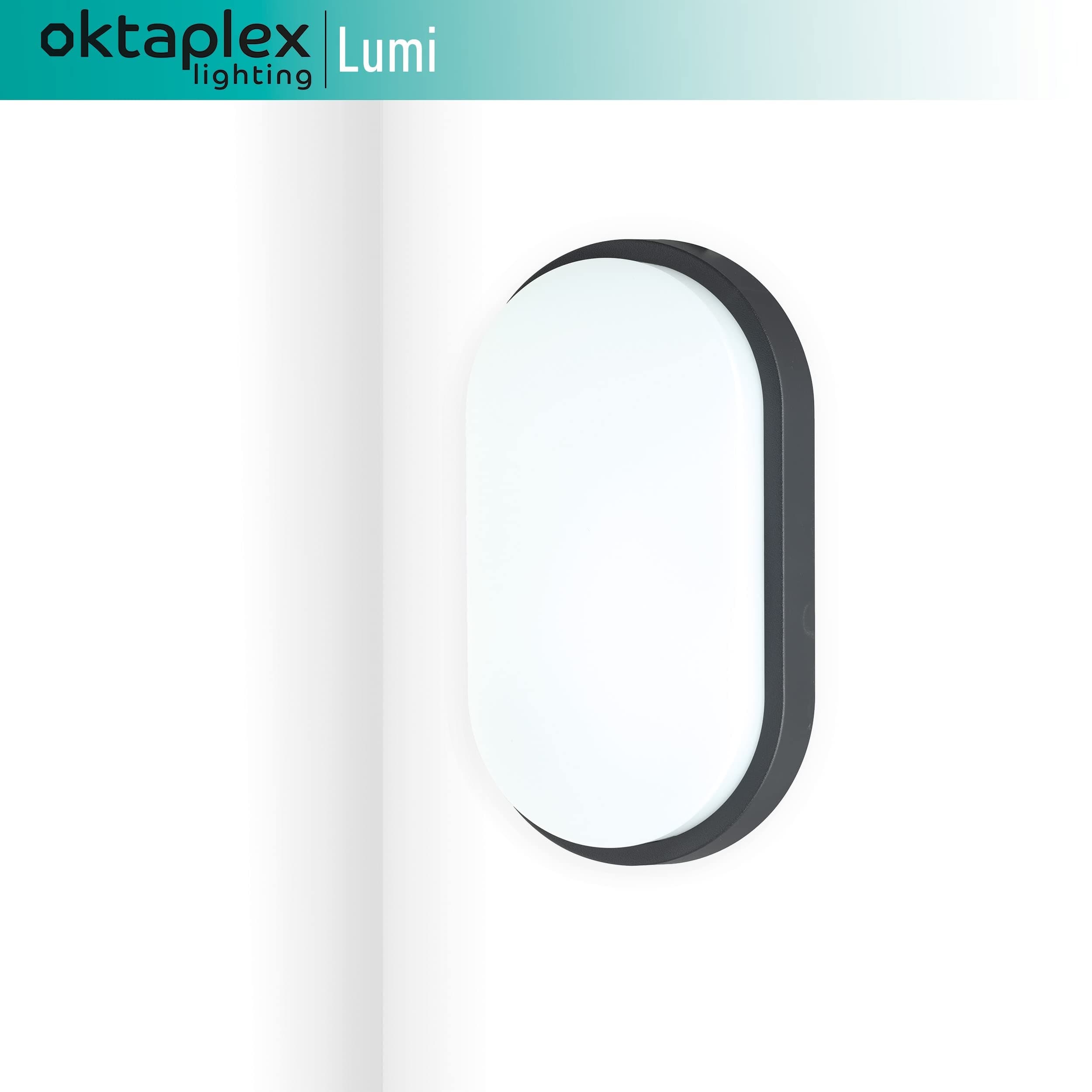 Oktaplex lighting LED lampa piwniczna Owalna Lumi IP54-10W 800Lm ciepła biel 3000K - Lampa owalna zewnętrzna Antracyt