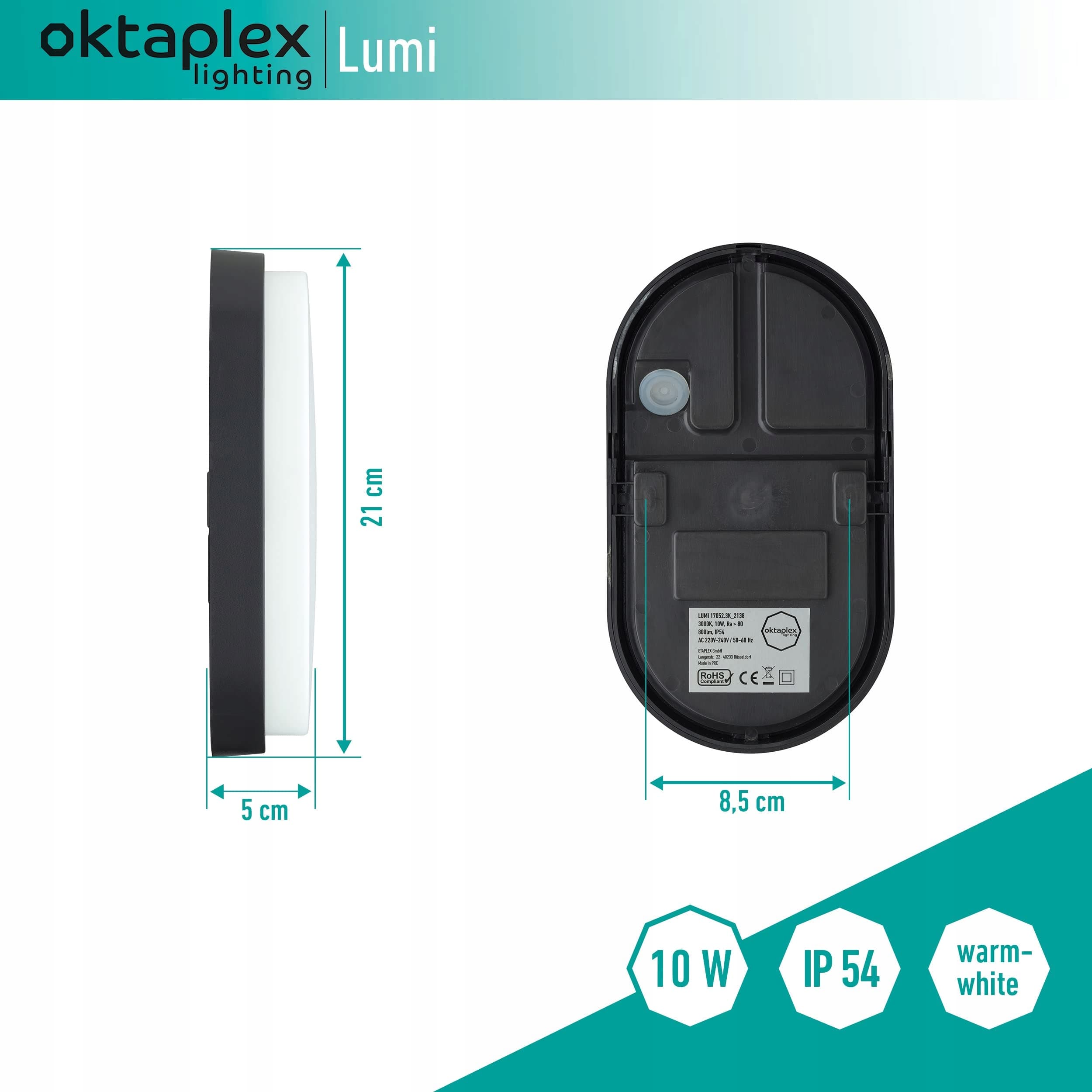 OKTAPLEX LED Lampa Owalna IP54 10W 800Lm 3000K Antracyt | Premium Supply