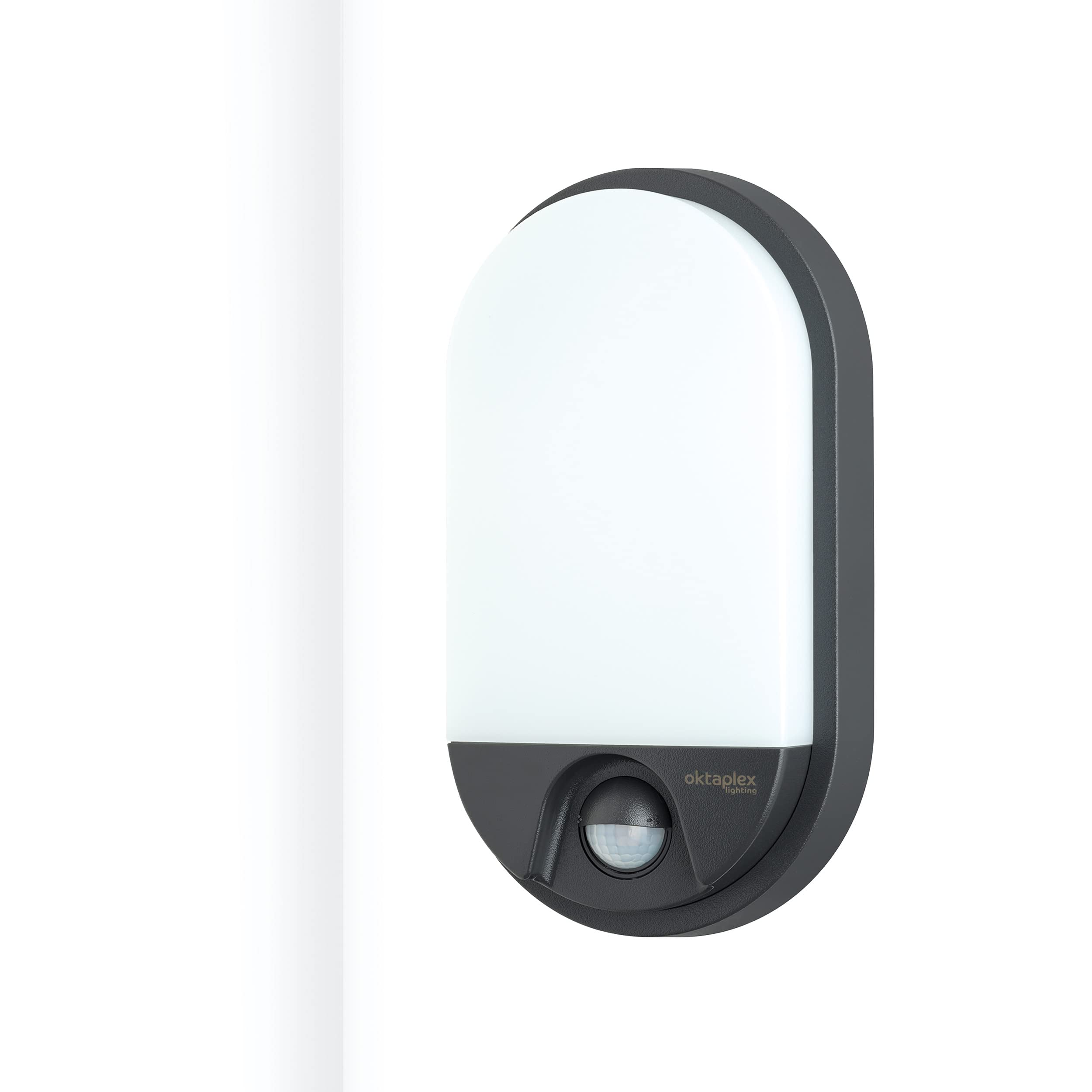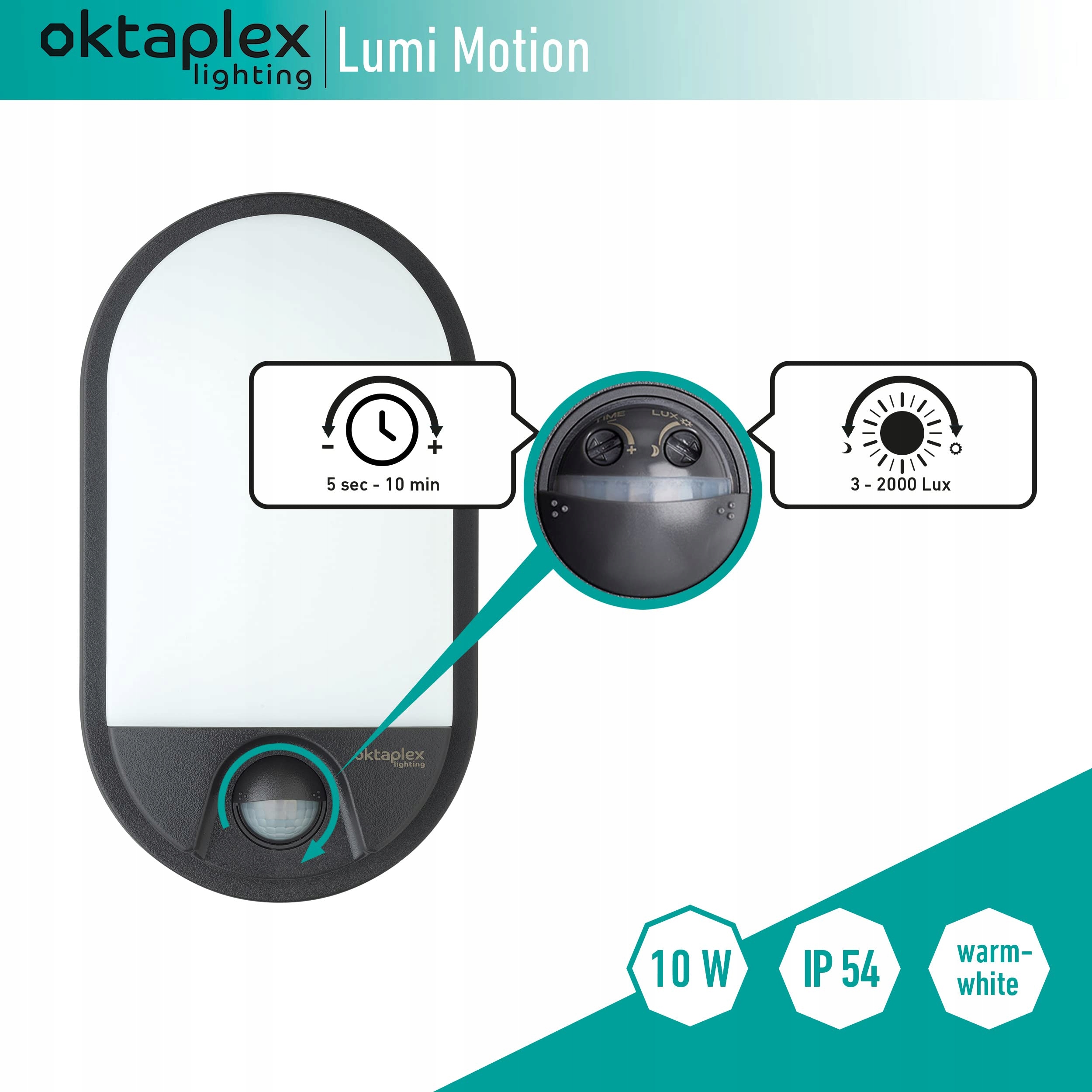 Oktaplex lighting LED lampa zewnętrzna owalna z czujnikiem ruchu Lumi Motion IP54-10W 800Lm ciepła biel 3000K - lampa zewnętrzna owalna antracyt