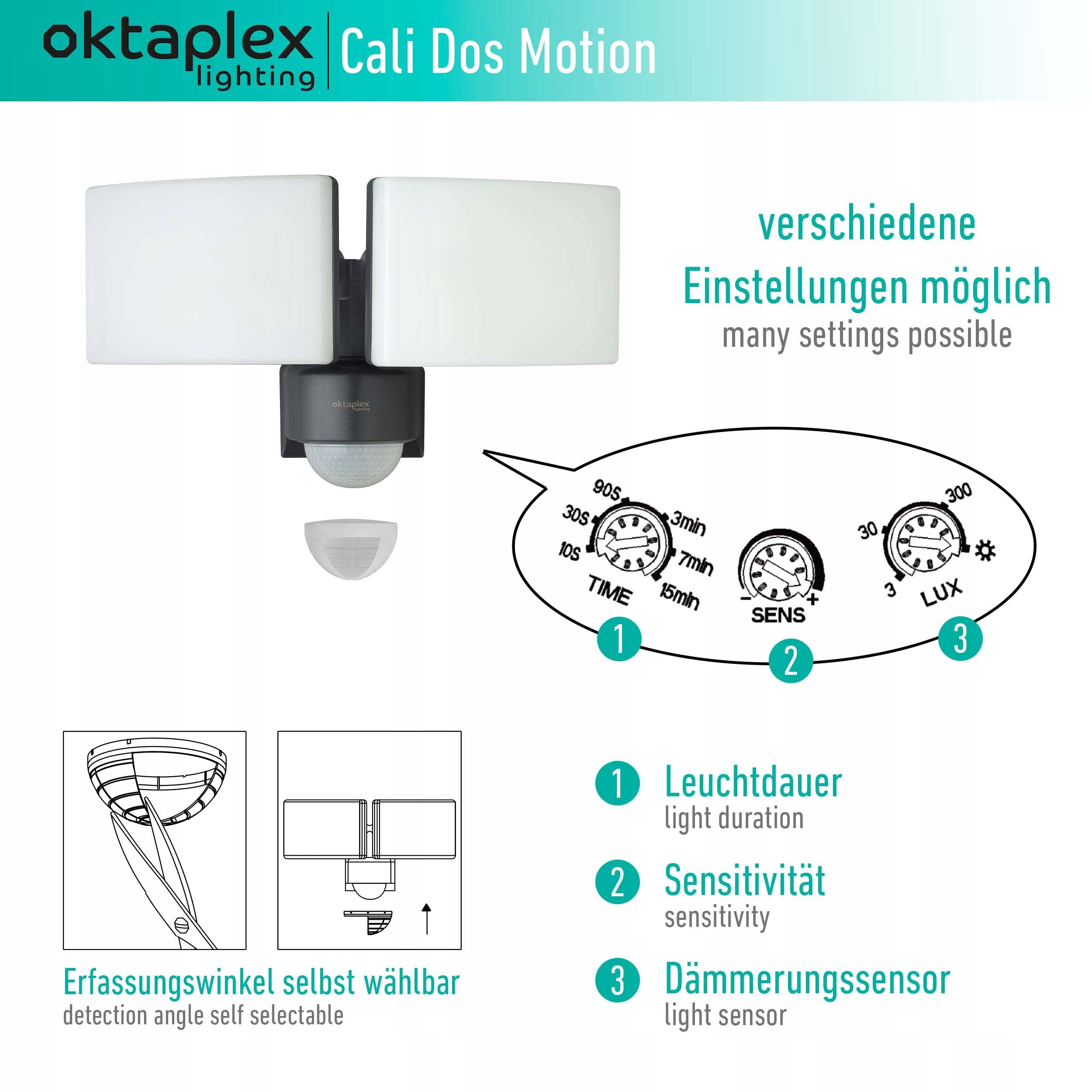 Oktaplex lighting LED reflektor z czujnikiem ruchu na zewnątrz Cali Dos Motion - IP65 Dwa głowice 40W 3000K Ciepła biel - Reflektor zewnętrzny antracytowy z funkcją Master