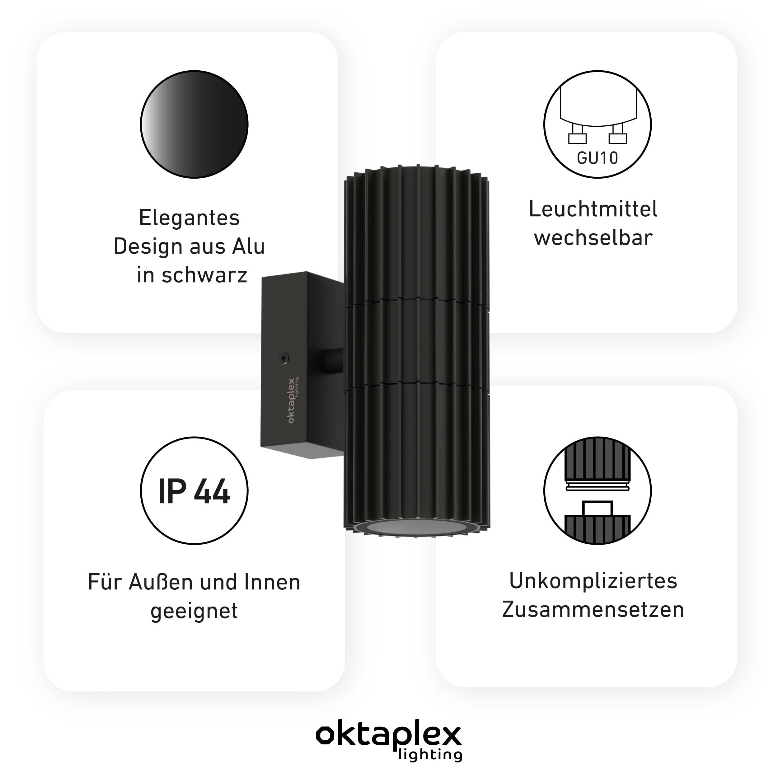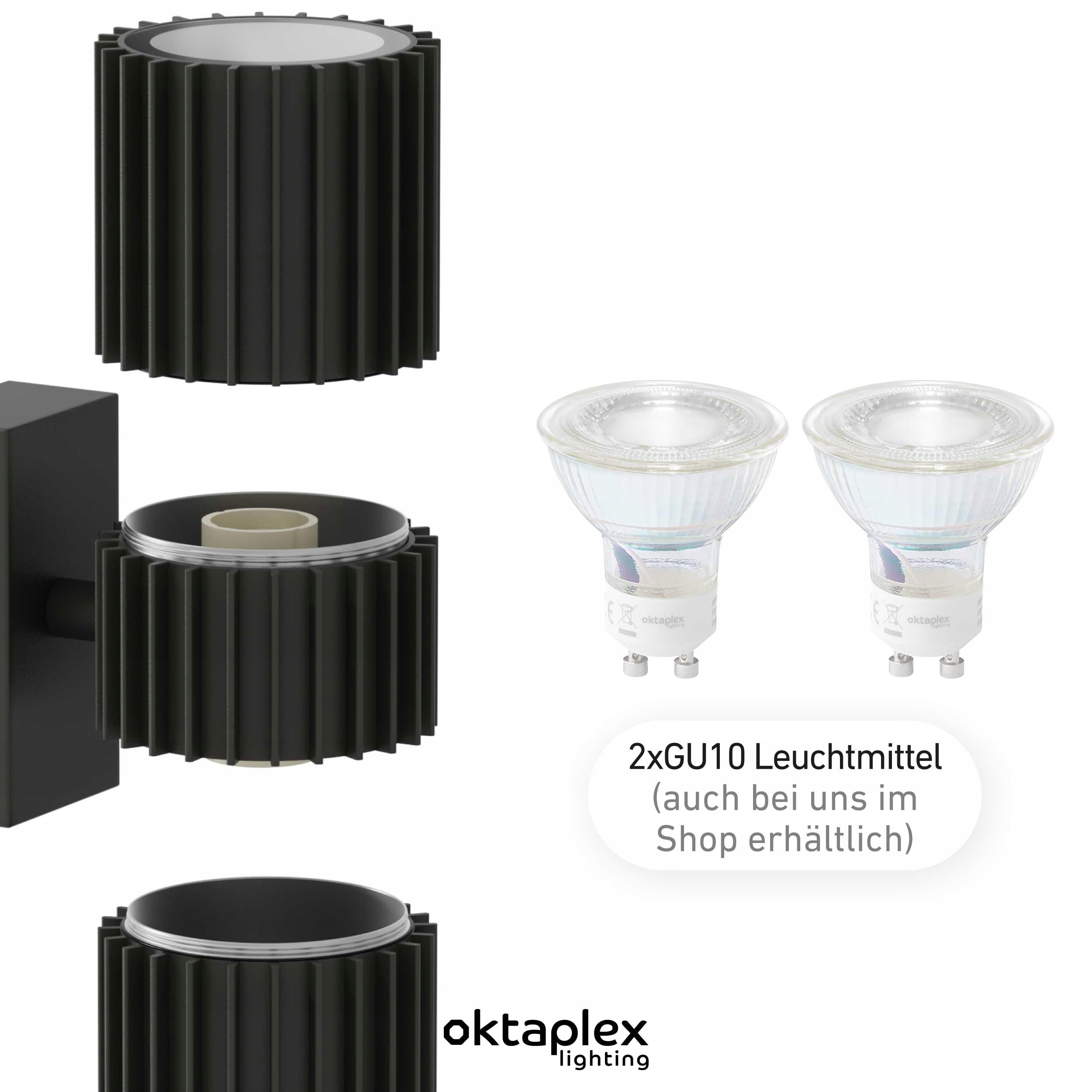 Oktaplex Para Aluminiumowa lampa zewnętrzna z 2x oprawkami GU10 Lampa zewnętrzna IP44 Kinkiet zewnętrzny czarny 230V Oświetlenie zewnętrzne