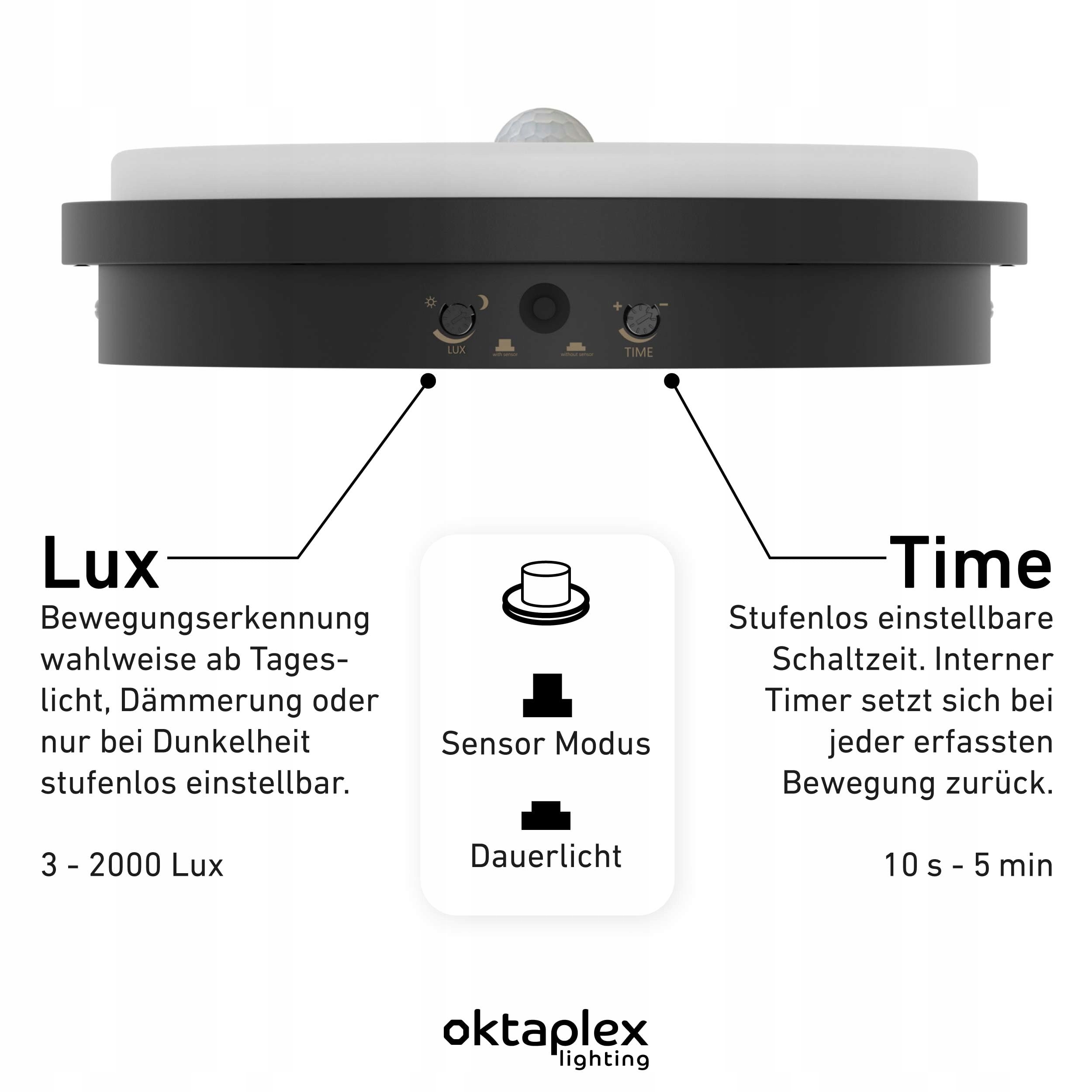 OKTAPLEX Plato Lampa Zewnętrzna LED Czujnik Ruchu 3000K IP65 10,5W Antacyt | Premium Supply