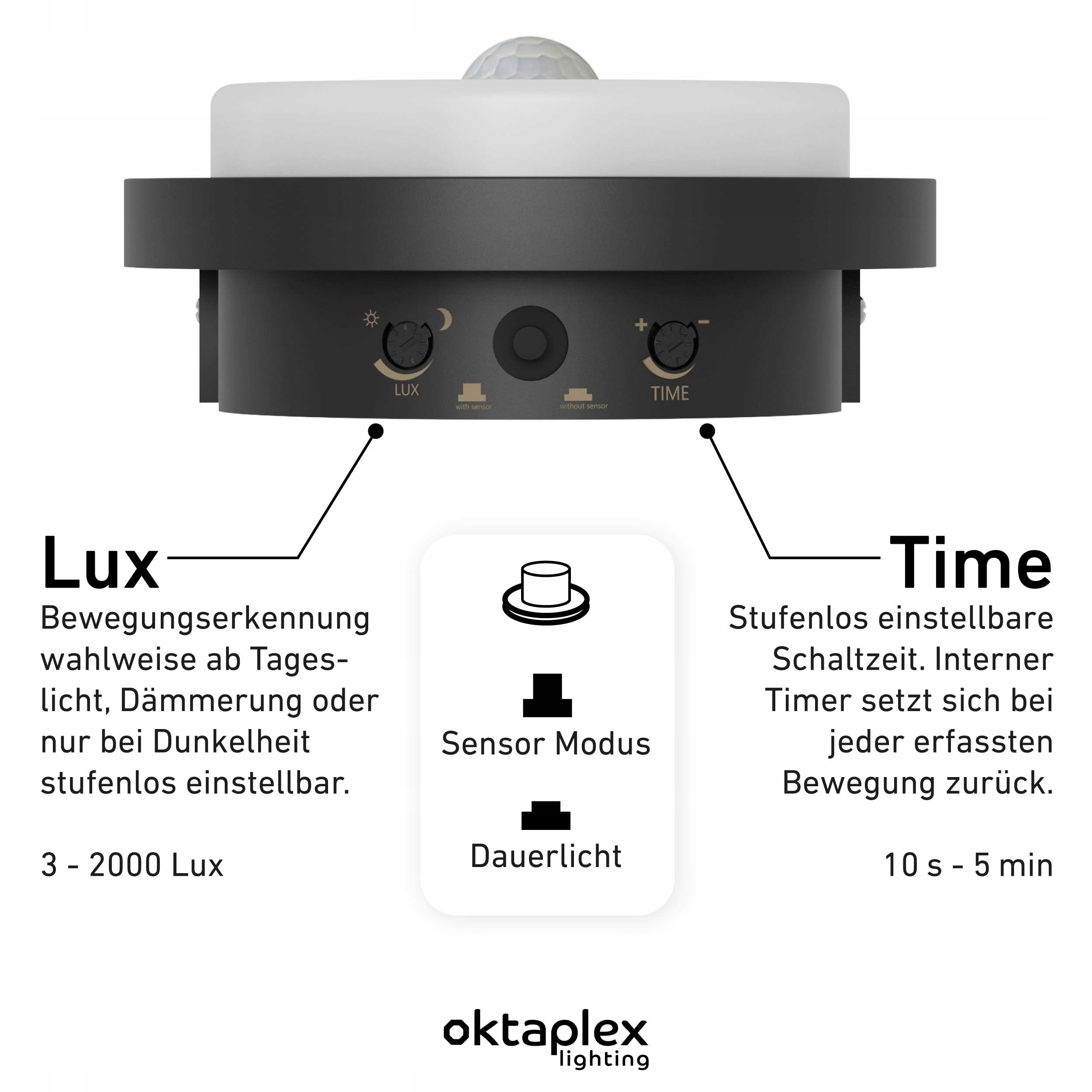 OKTAPLEX Plato Lampa Zewnętrzna LED Czujnik Ruchu 3000K IP65 1010lm 10,5W | Premium Supply
