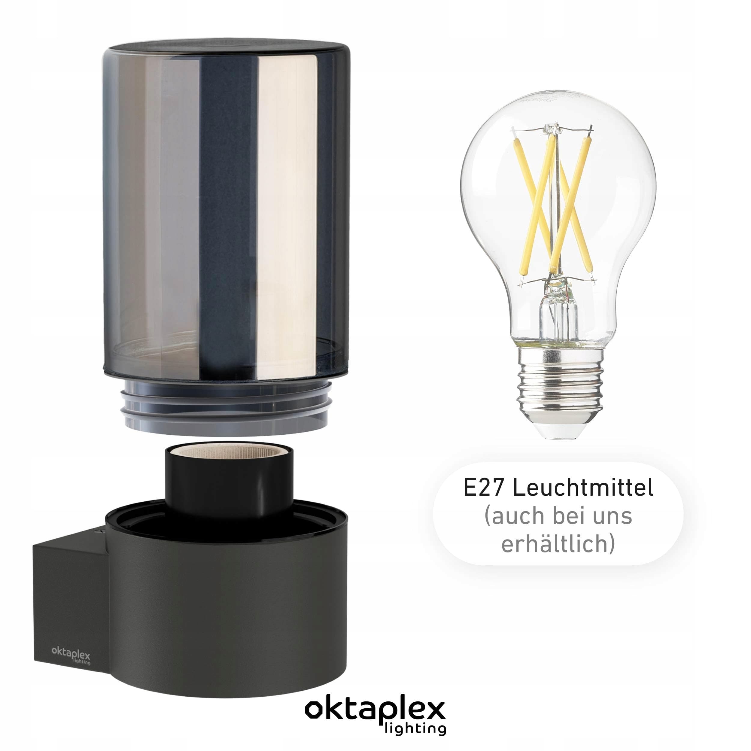 OKTAPLEX Puno Lampa Zewnętrzna Aluminium IP44 E27 Szklany Klosz Antracyt | Premium Supply