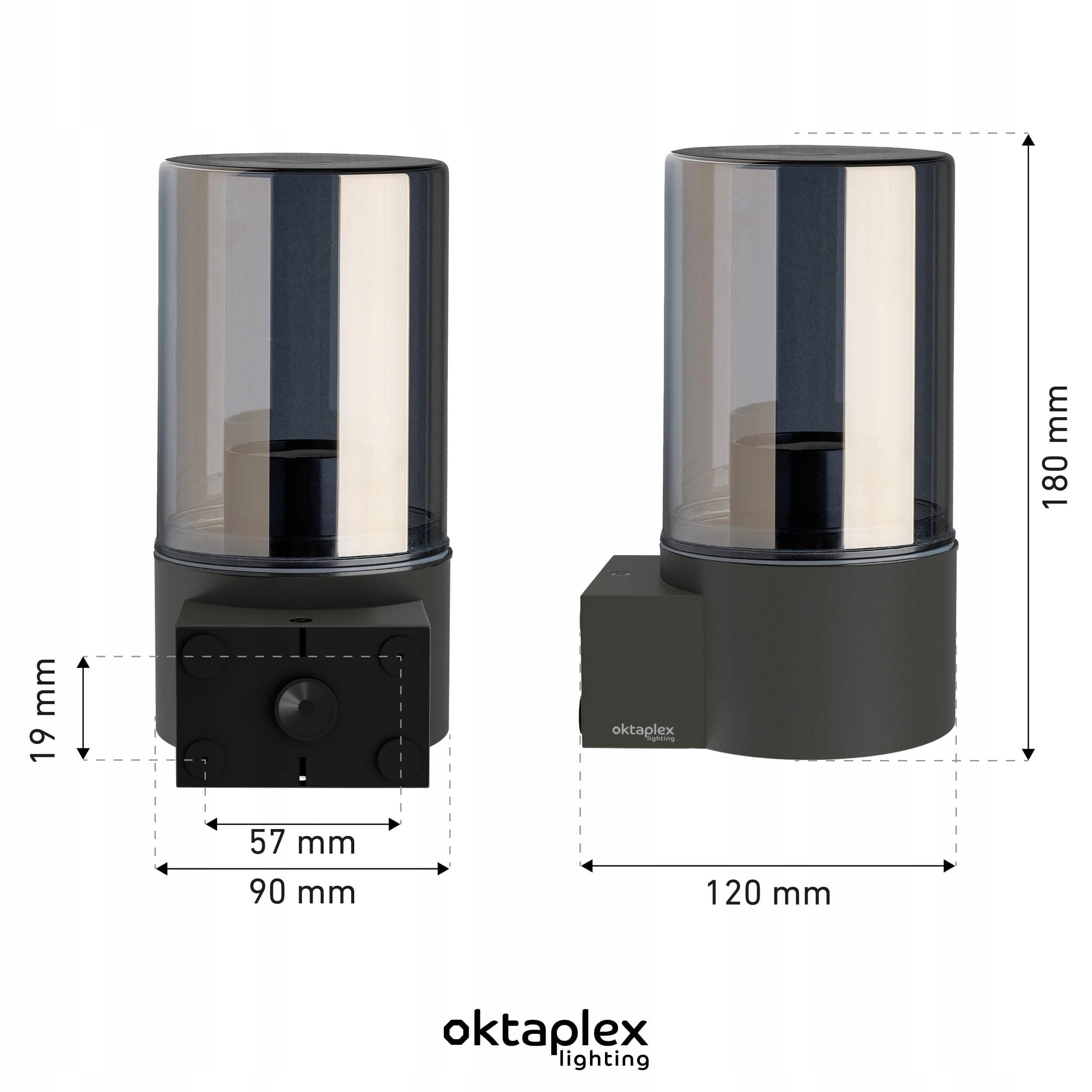 Wymiary: 120 x 90 x 180 mm (D x S x W) Lampa zewnętrzna z uchwytem ściennym, materiały montażowe w zestawie (żarówka nie jest w zestawie).