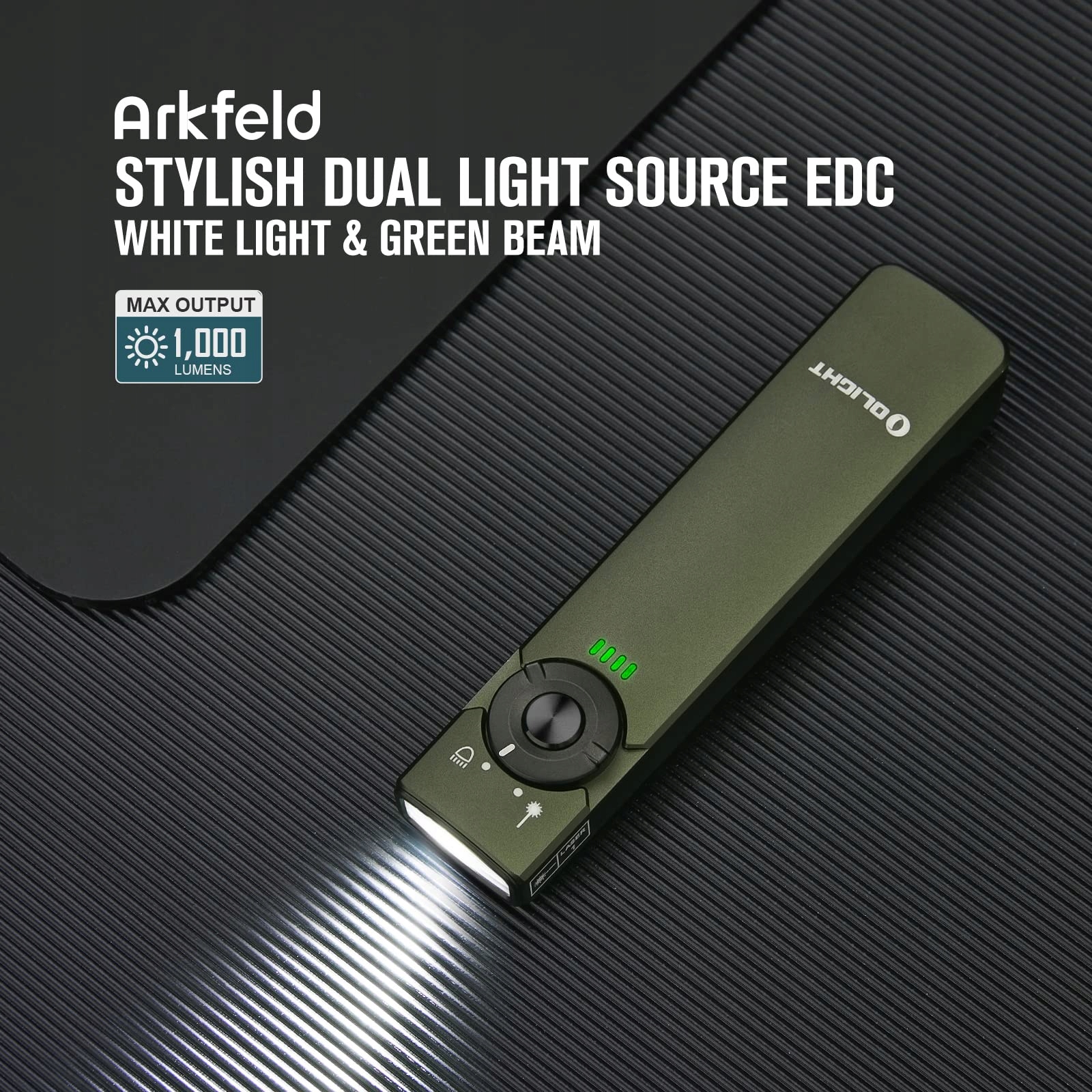 [𝐃𝐮𝐚𝐥𝐧𝐞 𝐳𝐫𝐨𝐝𝐥𝐨 𝐬𝐰𝐢𝐚𝐭𝐥𝐚] Arkfeld to pierwsze podwójne źródło światła i przenośna latarka EDC od Olight. Maksymalna jasność białego światła LED może osiągnąć 1000 lumenów; zielony promień może być używany do prezentacji