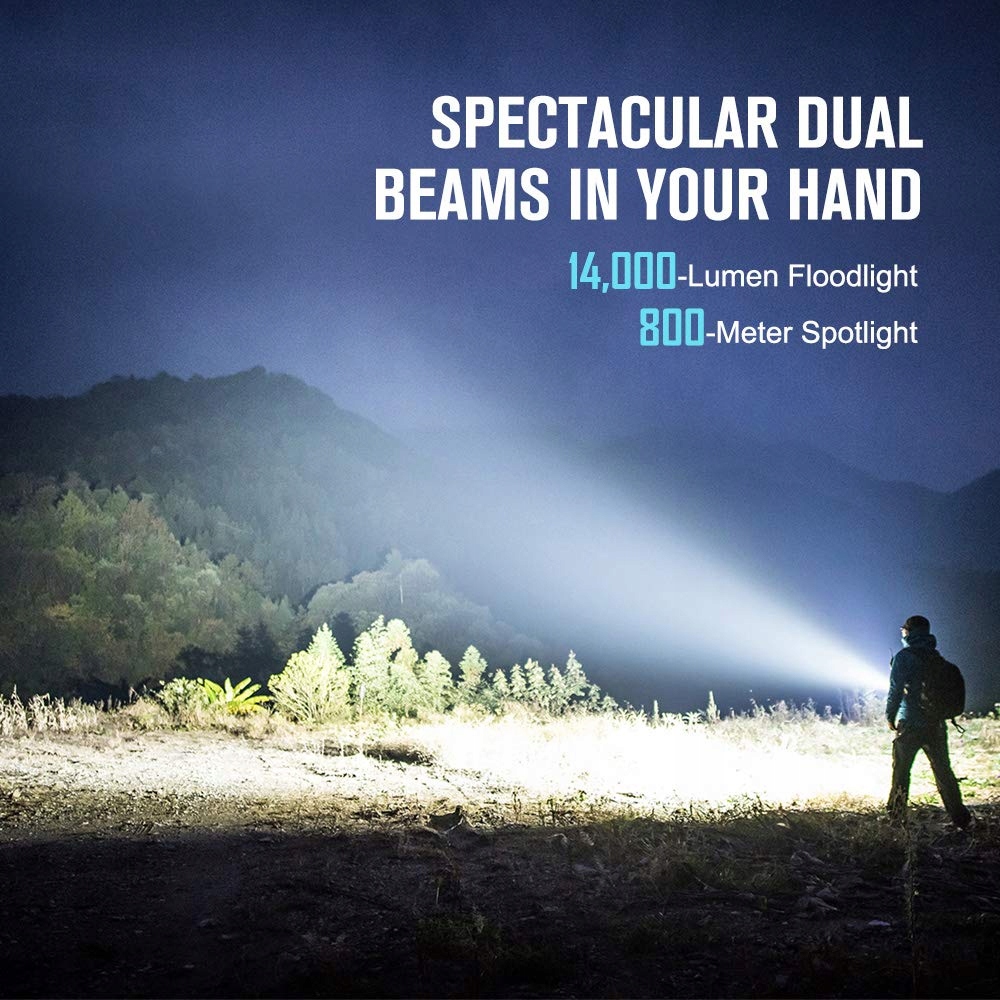 OLIGHT X7R Marauder 2 LED Latarka, Super Jasna 14000 Lumen Ładowalna USB Duża Latarka z Reflektorem i Światłem Rozproszonym, 800 metrów Zasięgu, 7 trybów, Czarna