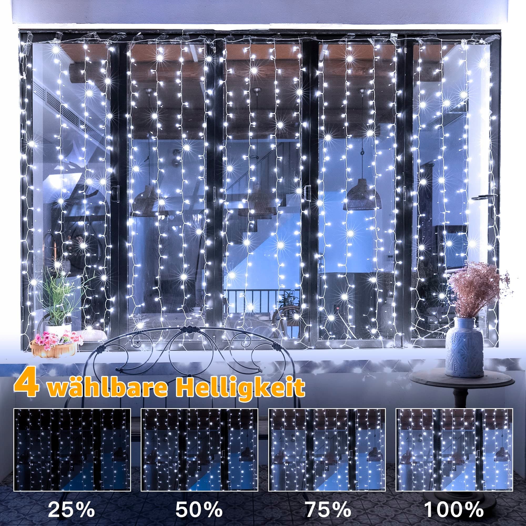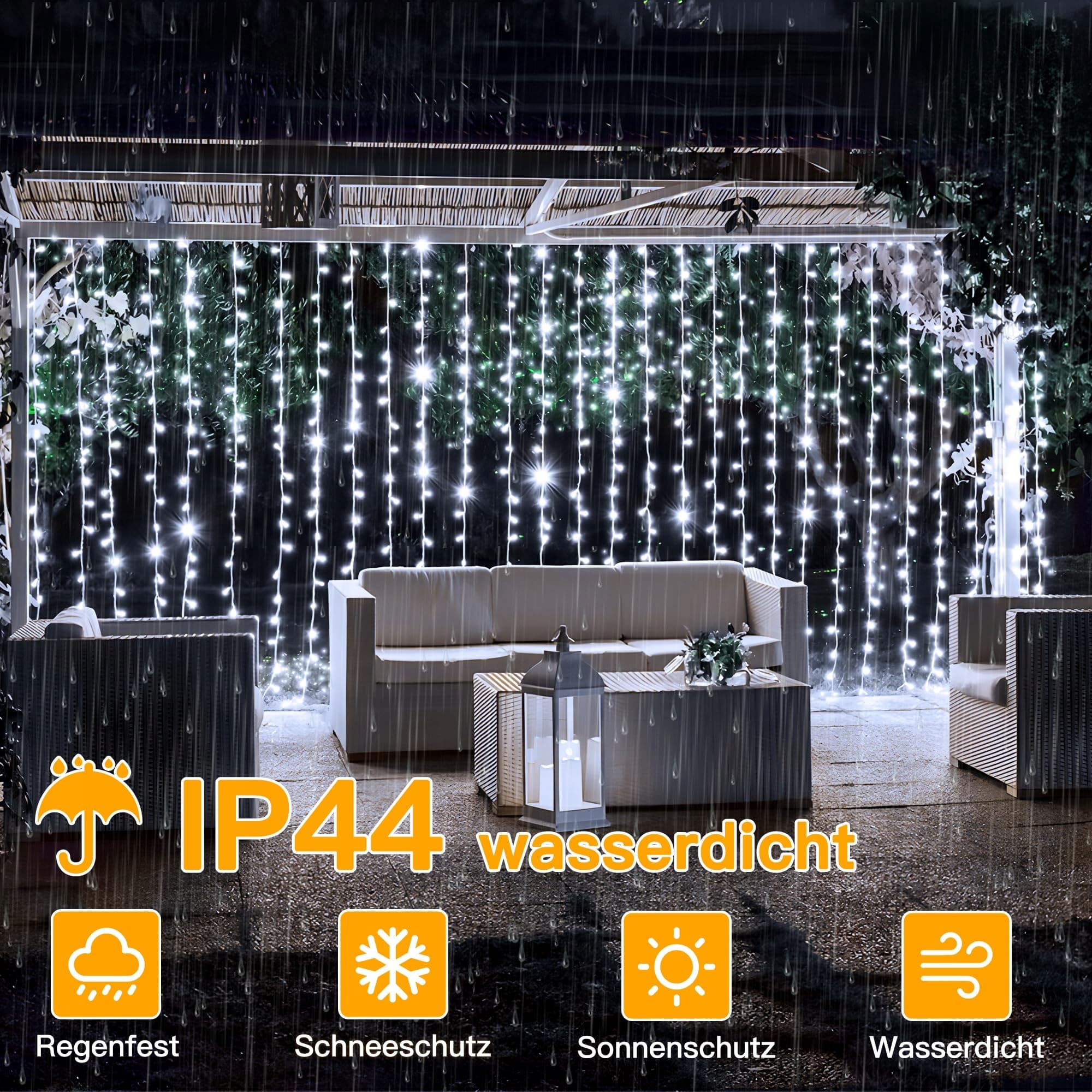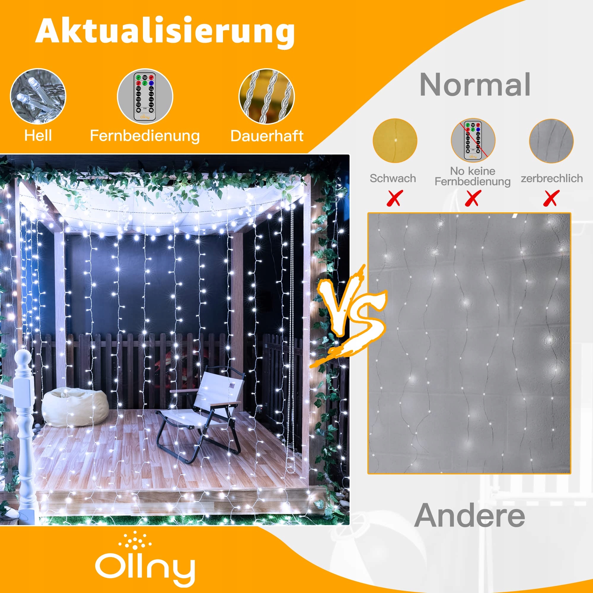 Wodoodporność i bezpieczeństwo: Ollny kurtyna świetlna wewnętrzna z wodoodpornością IP44. Przy napięciu zaledwie 5V są energooszczędne i łańcuch świetlny zewnętrzny nie przegrzewa się nawet po dłuższym użytkowaniu, bezpieczny dla dzieci i zwierząt