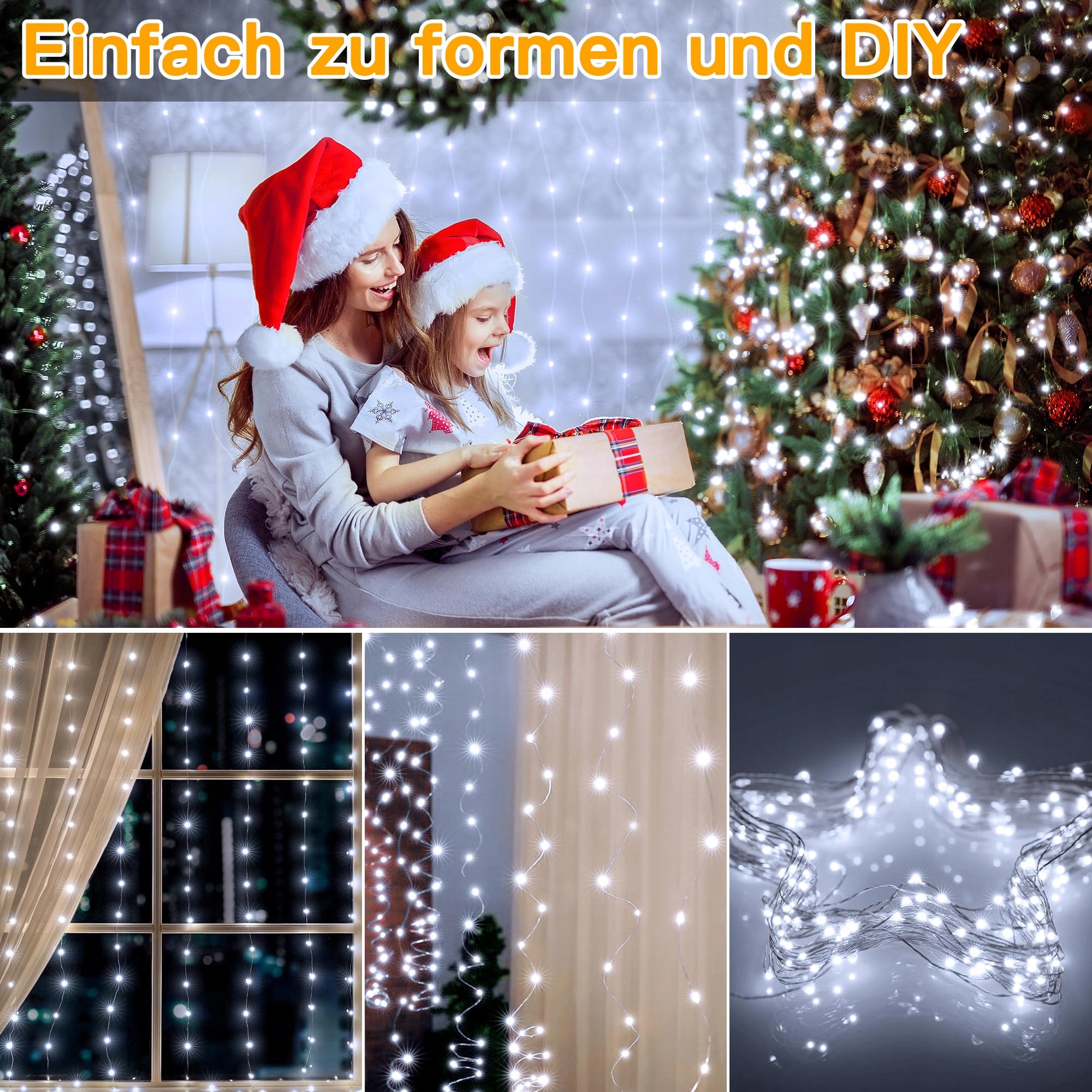 Wysoka jakość: Piękny LED łańcuch świetlny zasłona składa się ze srebrnego drutu miedzianego i wydajnych oraz przyjaznych dla środowiska diod LED. Ponieważ przewody są tak lekkie, elastyczne i cienkie, są bardzo łatwe do przenoszenia
