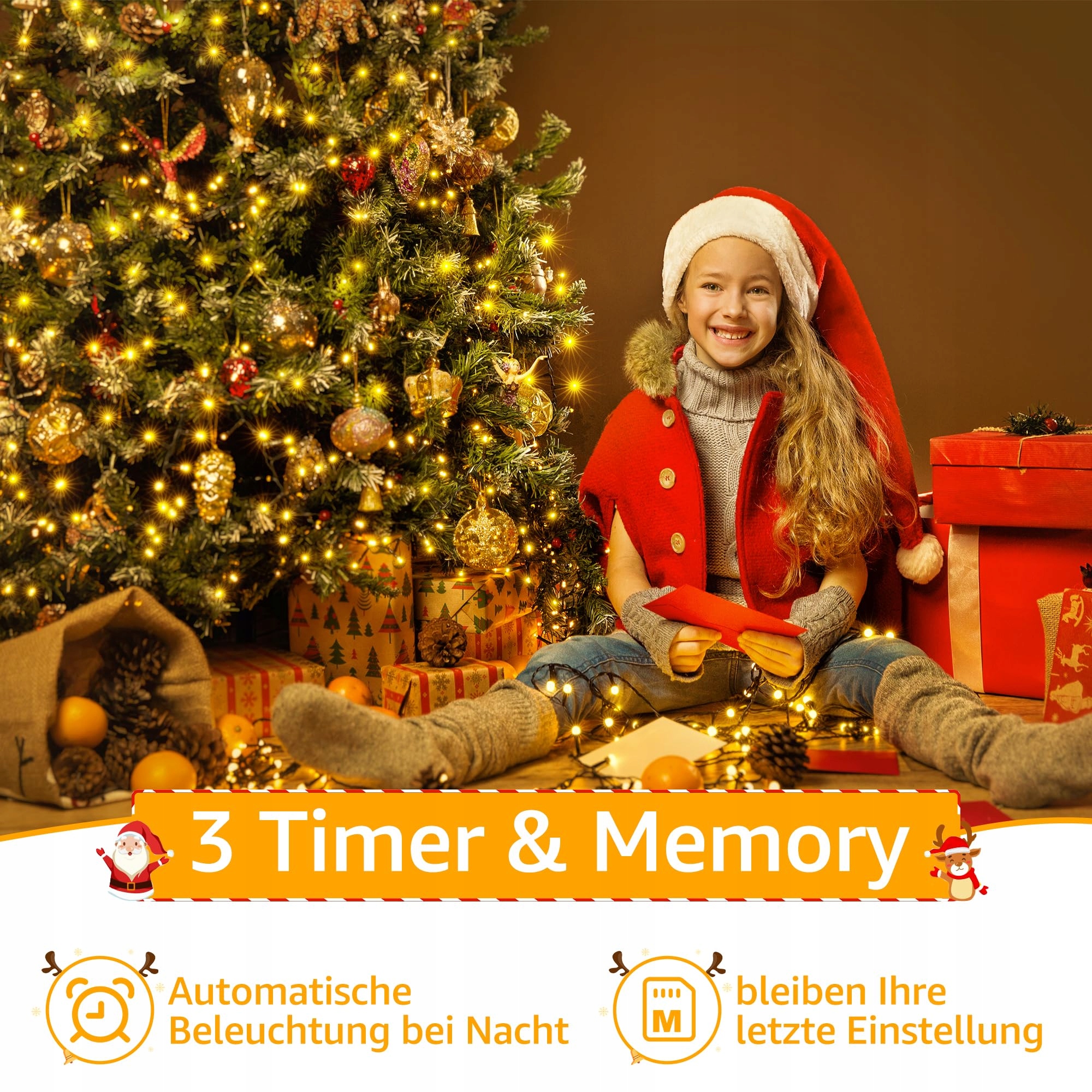 IP44 wodoodporność: Lichterkette na Boże Narodzenie wytrzymuje lekki deszcz i zachlapania, wspaniała dekoracja wewnętrzna i zewnętrzna na przyjęcia bożonarodzeniowe. Niskie napięcie 31V, które nie przegrzewa się po godzinach pracy, bezpieczne dla dzieci i zwierząt domowych