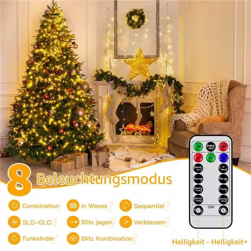 3 tryby timera: Lichterkette na choinkę wewnętrzną z pilotem pozwala łatwo ustawić różne efekty, 3 tryby timera do wyboru (4/6/8H); Ustawienia pozostaną takie, jakie wybrałeś wcześniej, nie trzeba ich resetować