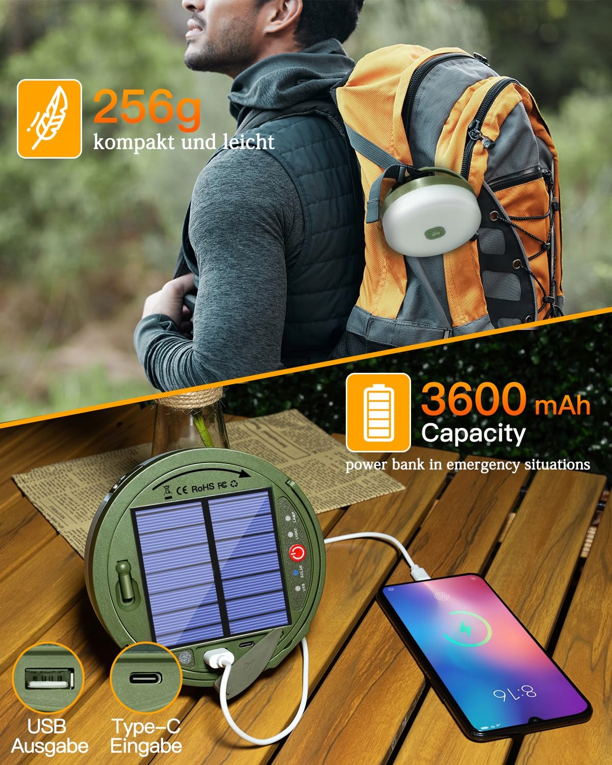 [Zasilanie słoneczne i USB]: Łańcuch świetlny USB Camping jest zarówno ładowalny przez USB, jak i słonecznie, i wyposażony w akumulator 3600mAh, który może działać przez 15 do 18 godzin. Jest również wyposażony w bezpieczny pasek świetlny niskiego napięcia, który ma kilka funkcji ochronnych, aby zapobiec przeładowaniu i przepięciu. Nasze solarne łańcuchy świetlne kempingowe są niezbędne w ciemności, podczas awarii prądu i w sytuacjach awaryjnych