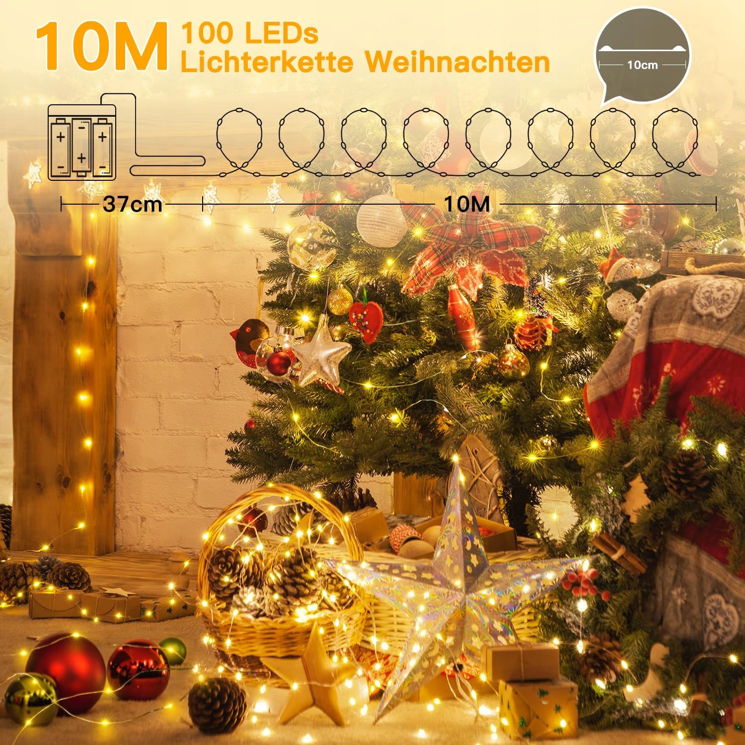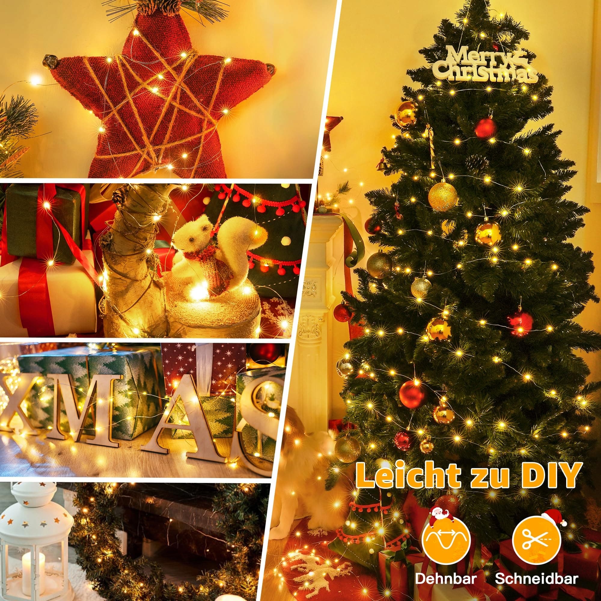 10M 100 jasnych LED Lichterkette Ciepła biel: Diody LED świecą jasno, ale nie są nachalne i emitują piękne światło. Wieczorami włączasz Lichterkette na choince, aby stworzyć wspaniałą przytulną atmosferę