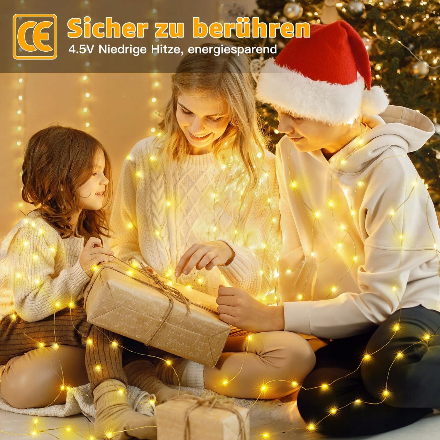 Bezpieczne w dotyku: Weihnachtsbeleuchtung wewnętrzna z baterią z diodami LED o niskiej temperaturze i izolowanym miedzianym drutem, ta Lichterkette jest bezpieczna w użyciu i dotyku; IP44 wodoodporna, odpowiednia do dekoracji na zewnątrz, takich jak taras, ogród, okno itd.