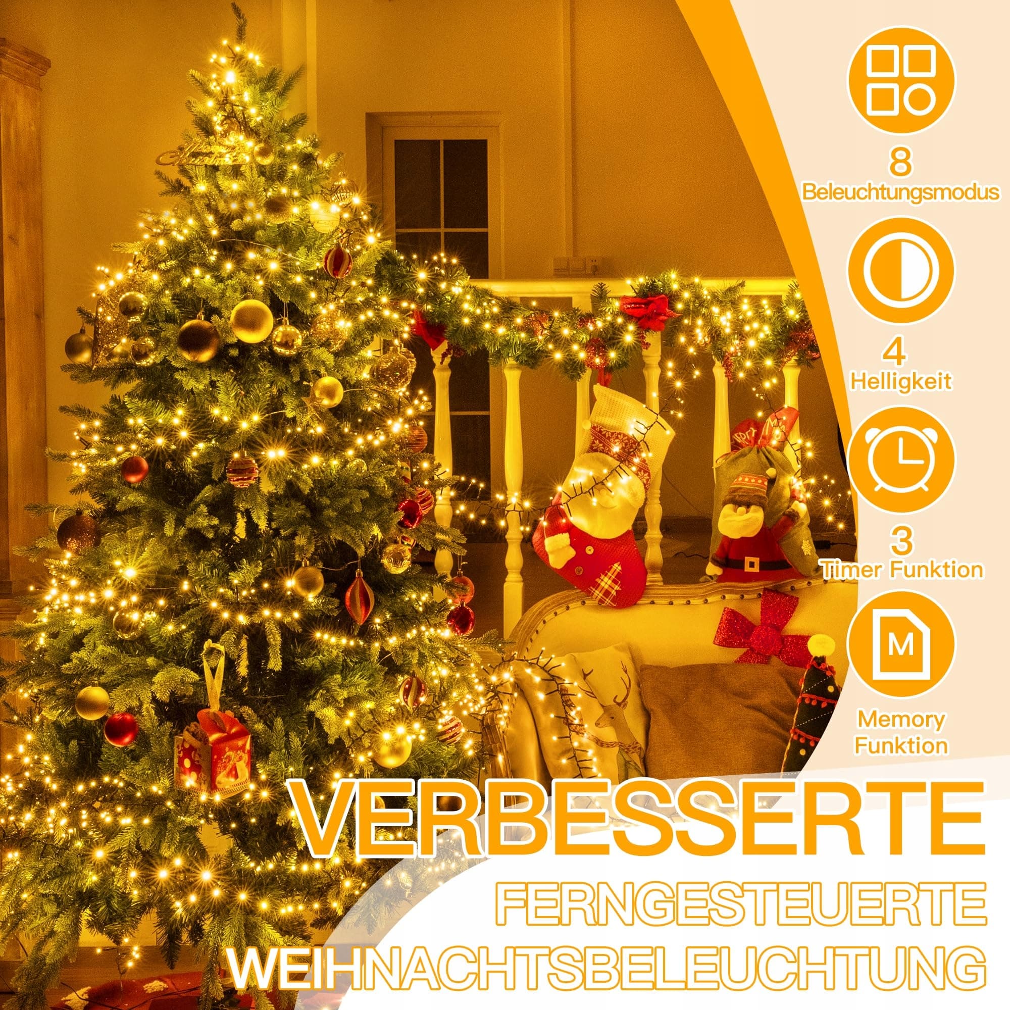 1000LED Super gęsta Lichterkette: Odległość między poszczególnymi LEDami wynosi tylko 1,5 cm. Żarówka jest gęstsza i jaśniejsza niż zwykłe światła. Szczególnie idealna na Boże Narodzenie i inne święta, aby stworzyć świąteczną atmosferę