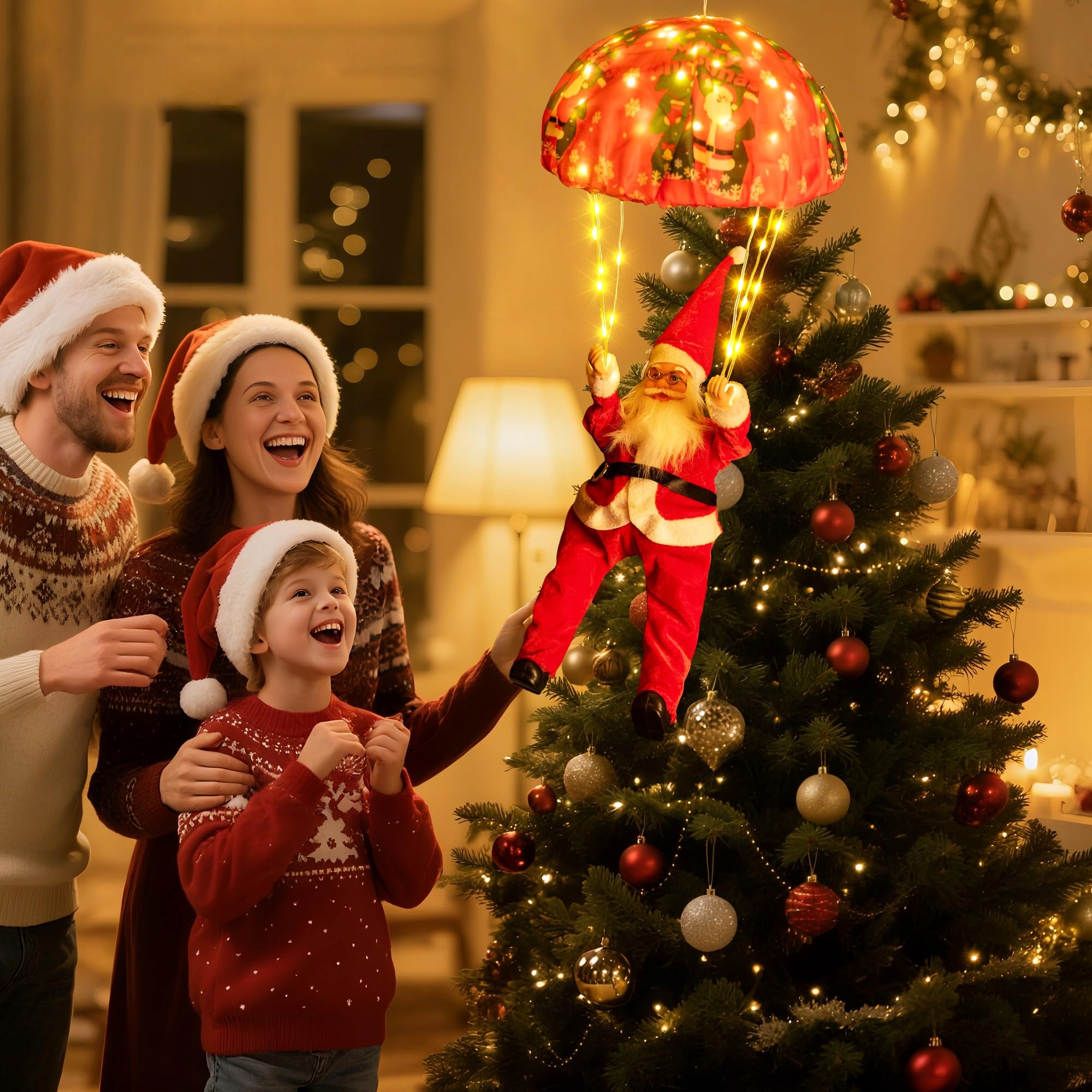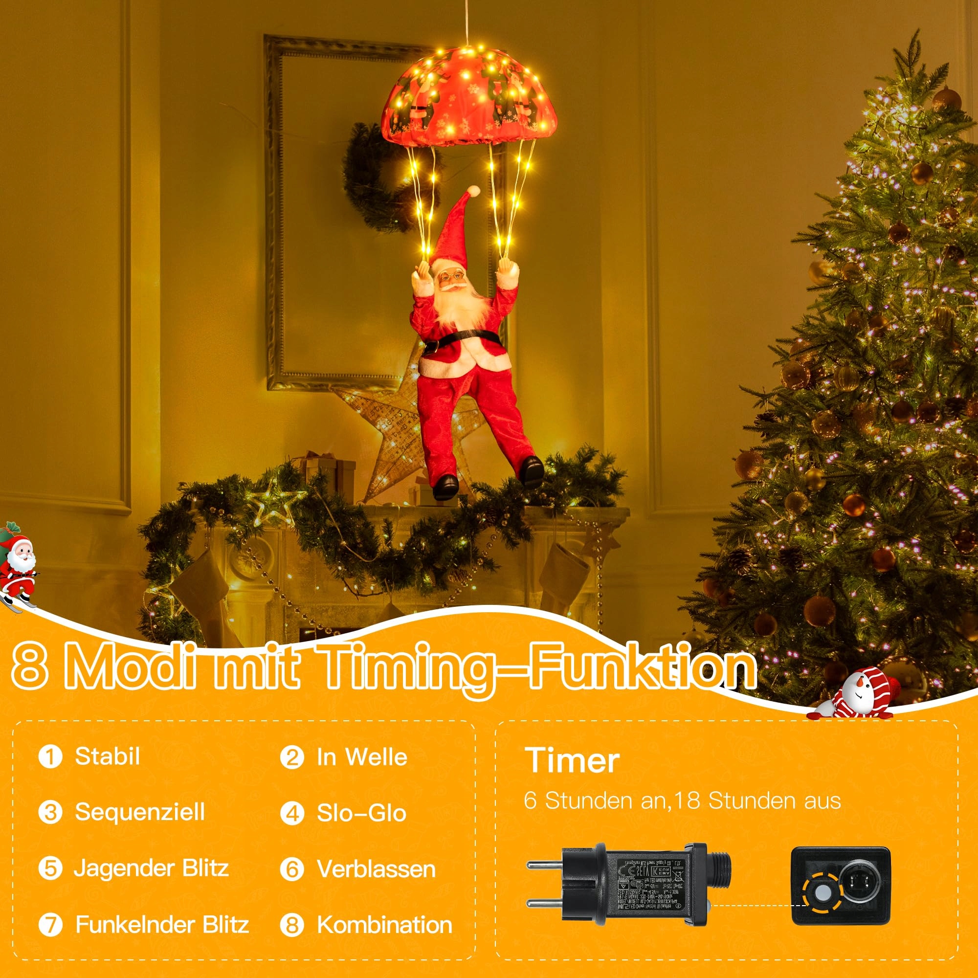 Design Mikołaja na spadochronie: girlanda świetlna z Mikołajem na spadochronie, idealna na choinkę, werandę, okno, ścianę, schody, ogród, taras lub sypialnię. Łatwa do zawieszenia i zapewnia świąteczną, piękną dekorację w domu