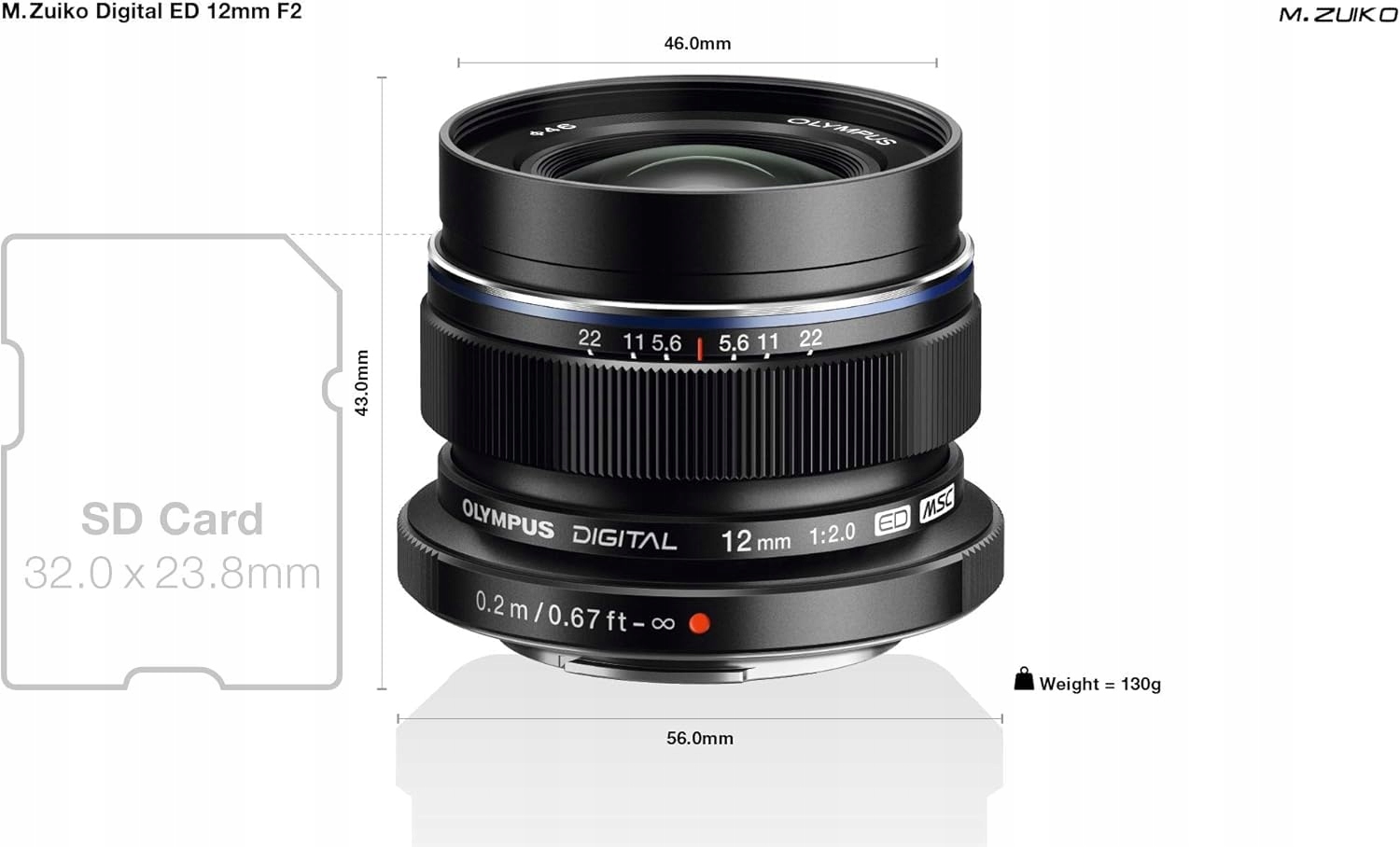 Olympus M.Zuiko Digital ED 12mm F2.0 obiektyw, jasna stałoogniskowa, odpowiedni do wszystkich aparatów MFT (modele Olympus OM-D i PEN, Panasonic seria G), czarny