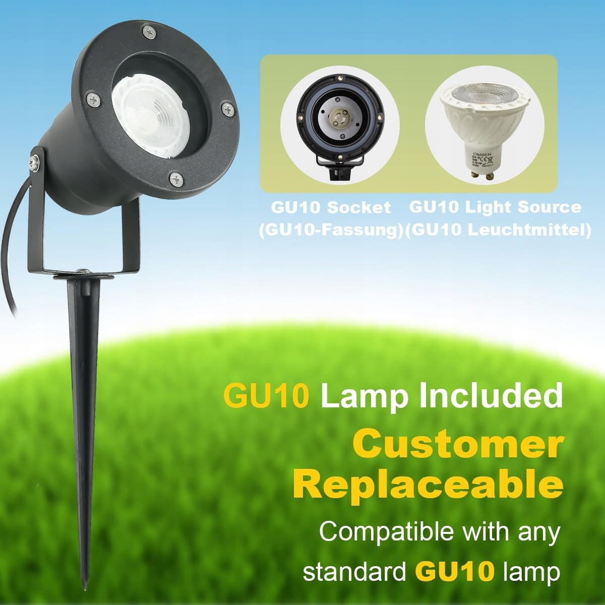 𝗪𝘆𝗺𝗶𝗲𝗻𝗻𝗲 ź𝗿ó𝗱ł𝗮 ś𝘄𝗶𝗮𝘁ł𝗮 𝐆𝐔𝟏𝟎: Reflektory z kolcem do ziemi OMSEN przekonują prostotą wymiany źródeł światła. Nie każdy producent oferuje taką elastyczność! Jeśli chcesz inny kolor światła, po prostu wymień oryginalne dołączone źródło światła GU10 na inne źródło GU10 lub inteligentne źródło GU10. Dzięki wymiennym źródłom światła nie musisz wyrzucać całej lampy w przypadku awarii, co pozwala na znaczne oszczędności