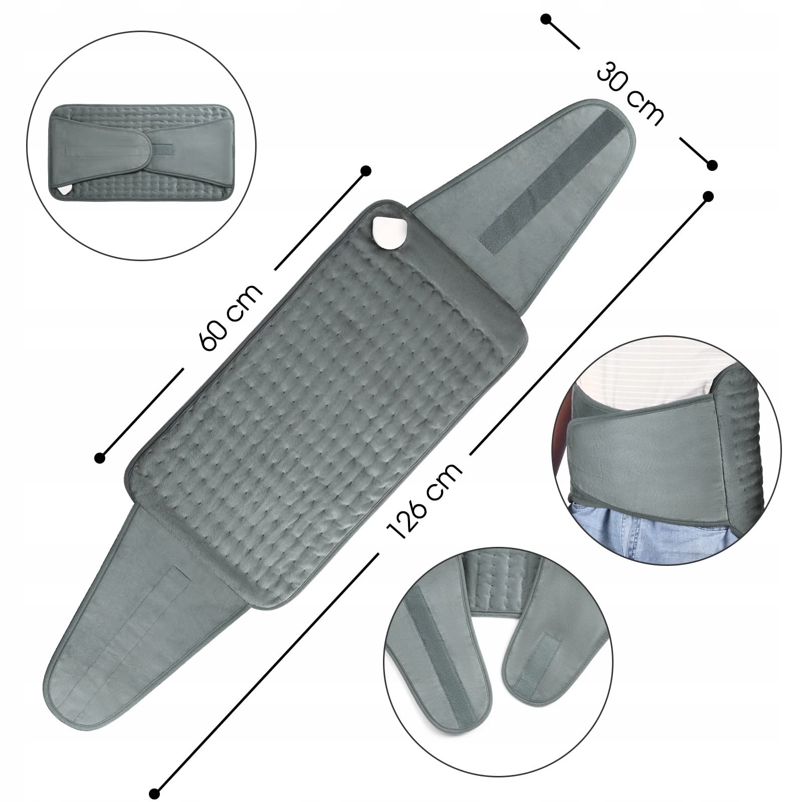 Poduszka grzewcza OneAmg 126x30cm Poduszka elektryczna z 6 poziomami temperatury i automatycznym wyłączaniem Szybkie nagrzewanie Możliwość prania w pralce Koc grzewczy Koc elektryczny na plecy Lędźwie Brzuch Ramiona Szary