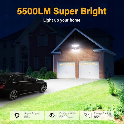 Bardzo jasny i energooszczędny: Ten 55W LED reflektor z czujnikiem ruchu jest wyposażony w 112 wysokiej jakości diod LED i dostarcza do 5000 lumenów jasnego światła. Z temperaturą barwową 6500K zimnej bieli reflektor zewnętrzny idealnie nadaje się do ogrodu, podwórka, garażu, tarasu lub podjazdu. Duża powierzchnia oświetlenia do 100 m² zapewnia większe bezpieczeństwo na zewnątrz i jednocześnie oszczędza do 85% energii.