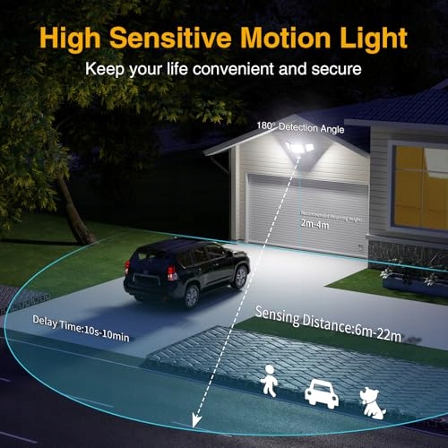 Wodoodporność IP65: Wbudowany czujnik ruchu niezawodnie wykrywa ruch, a zasięg detekcji można dostosować według potrzeb. Dzięki ochronie IP65 lampa bezpieczeństwa na zewnątrz jest chroniona przed deszczem, śniegiem i kurzem. Idealnie nadaje się do długotrwałego użytkowania na zewnątrz, np. przy garażach, schodach, podwórkach, elewacjach, ogrodach lub podjazdach.