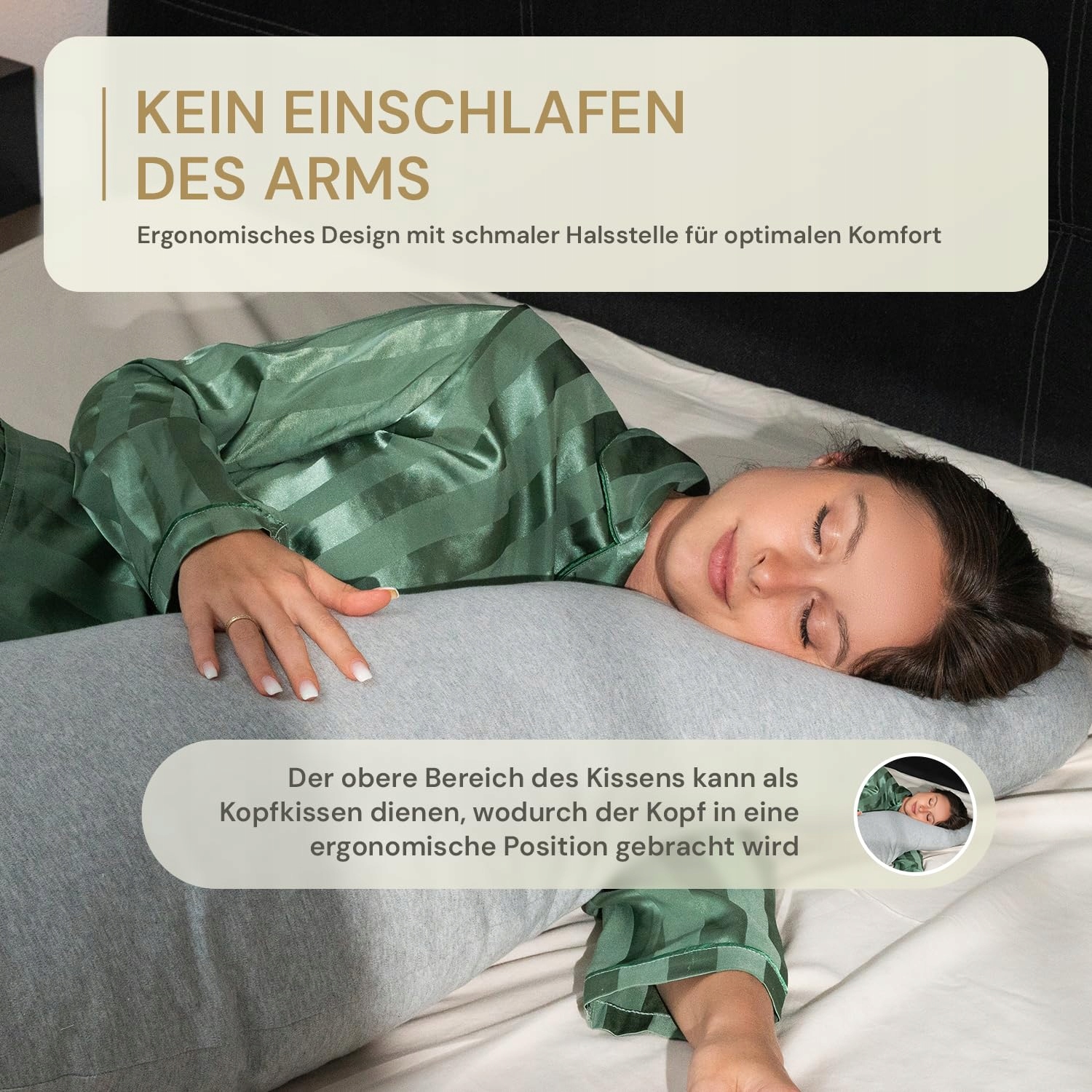 ✅ ZAPOBIEGA UCZUCIU DRĘTWIENIA W RAMIENIU – Dzięki specjalnemu kształtowi poduszki zmniejsza się nacisk na przedramię, co zapobiega drętwieniu ramienia i optymalnie wspiera krążenie krwi.