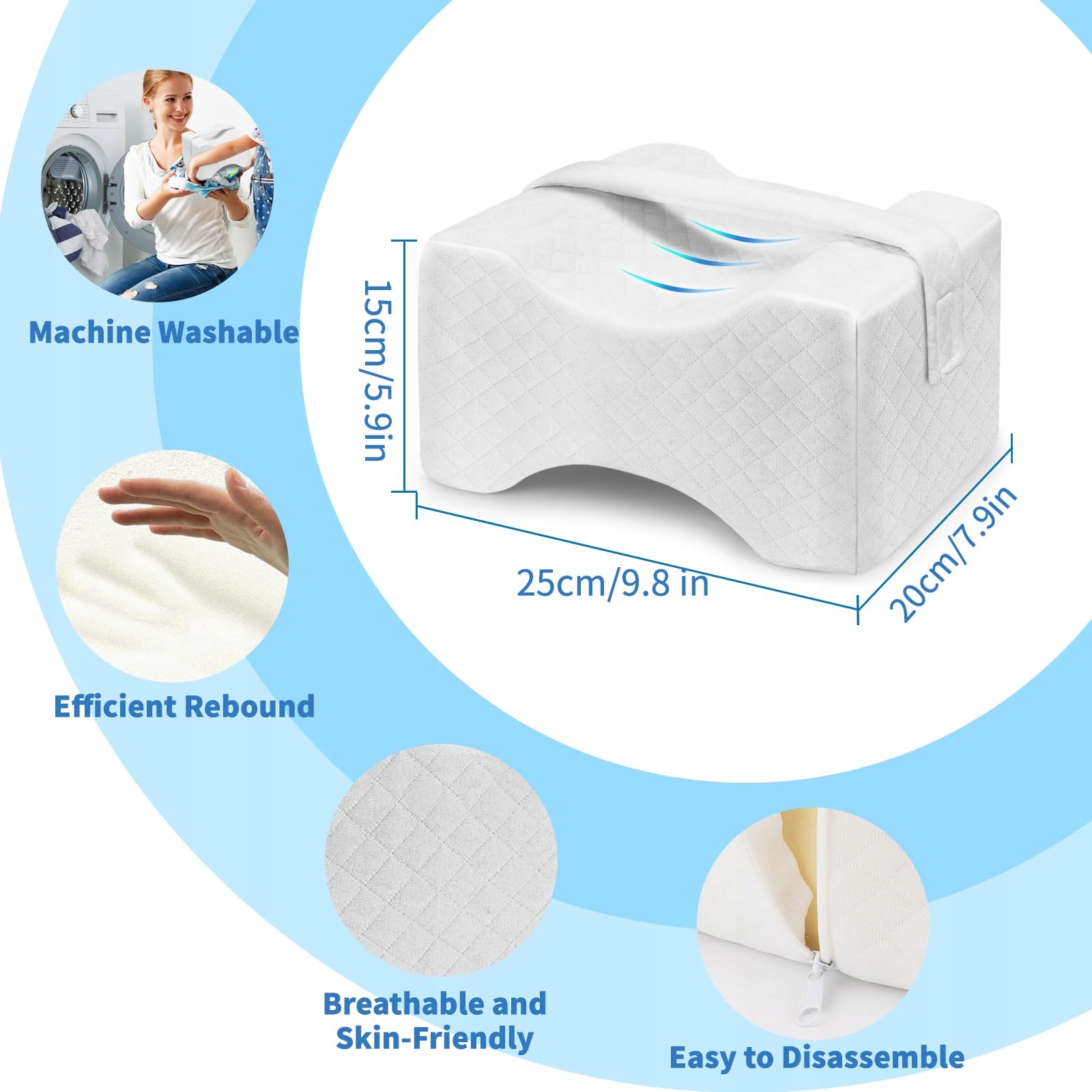 Wszechstronna poduszka pod kolana - Niezależnie od tego, czy służy do spania, jako dodatkowe boczne wsparcie w czasie ciąży, czy do łagodzenia dolegliwości kolan, pleców i nóg, ta poduszka na kolana ma wiele zastosowań. Redukuje punkty ucisku, dzięki czemu możesz doświadczyć niezrównanego komfortu i relaksu.