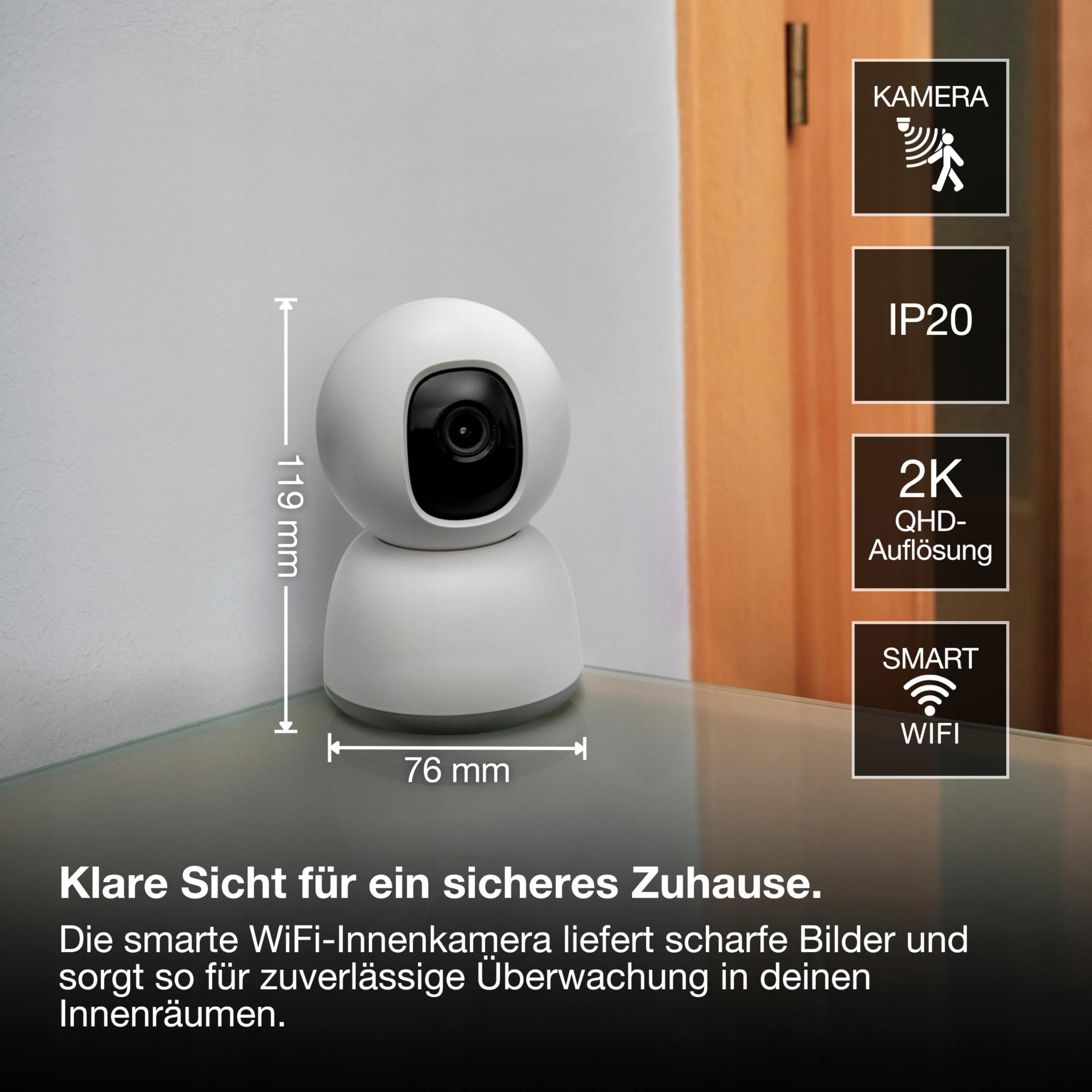 Technika: 4MP 2K QHD, obrót 315°/pochylenie 75°, widzenie w nocy do 7m, dwukierunkowe audio, microSD do 256GB, automatyczne śledzenie