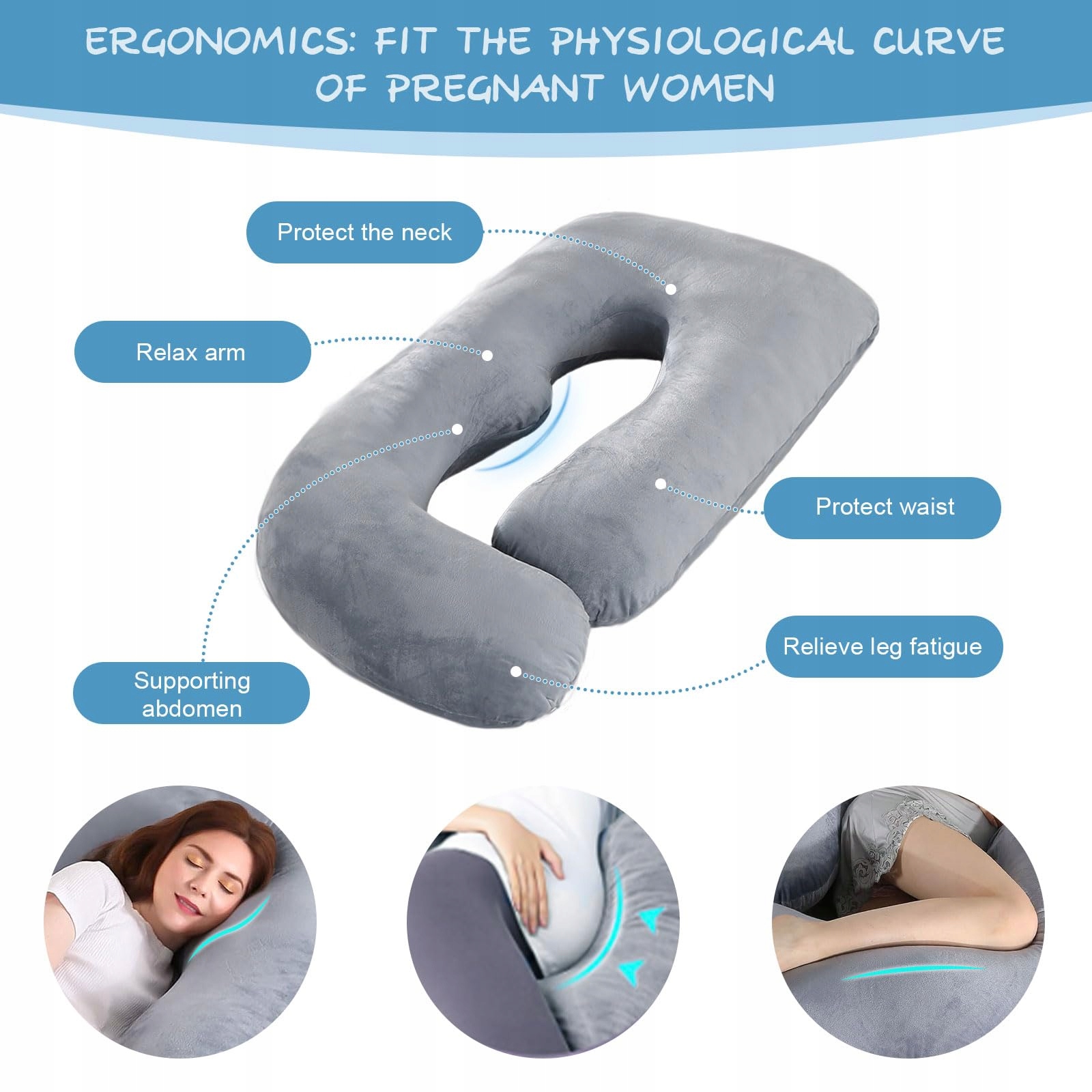 ✔[Najlepsza poduszka ciążowa] Ta poduszka ciążowa w kształcie litery J została unikalnie zaprojektowana, aby podążać za naturalnym kształtem ciała i zapewnia pełne wsparcie dla głowy, szyi, brzucha, pleców, bioder i nóg. Dzięki temu zmniejsza się liczba nocnych przerwań, a Ty możesz cieszyć się optymalnym snem.