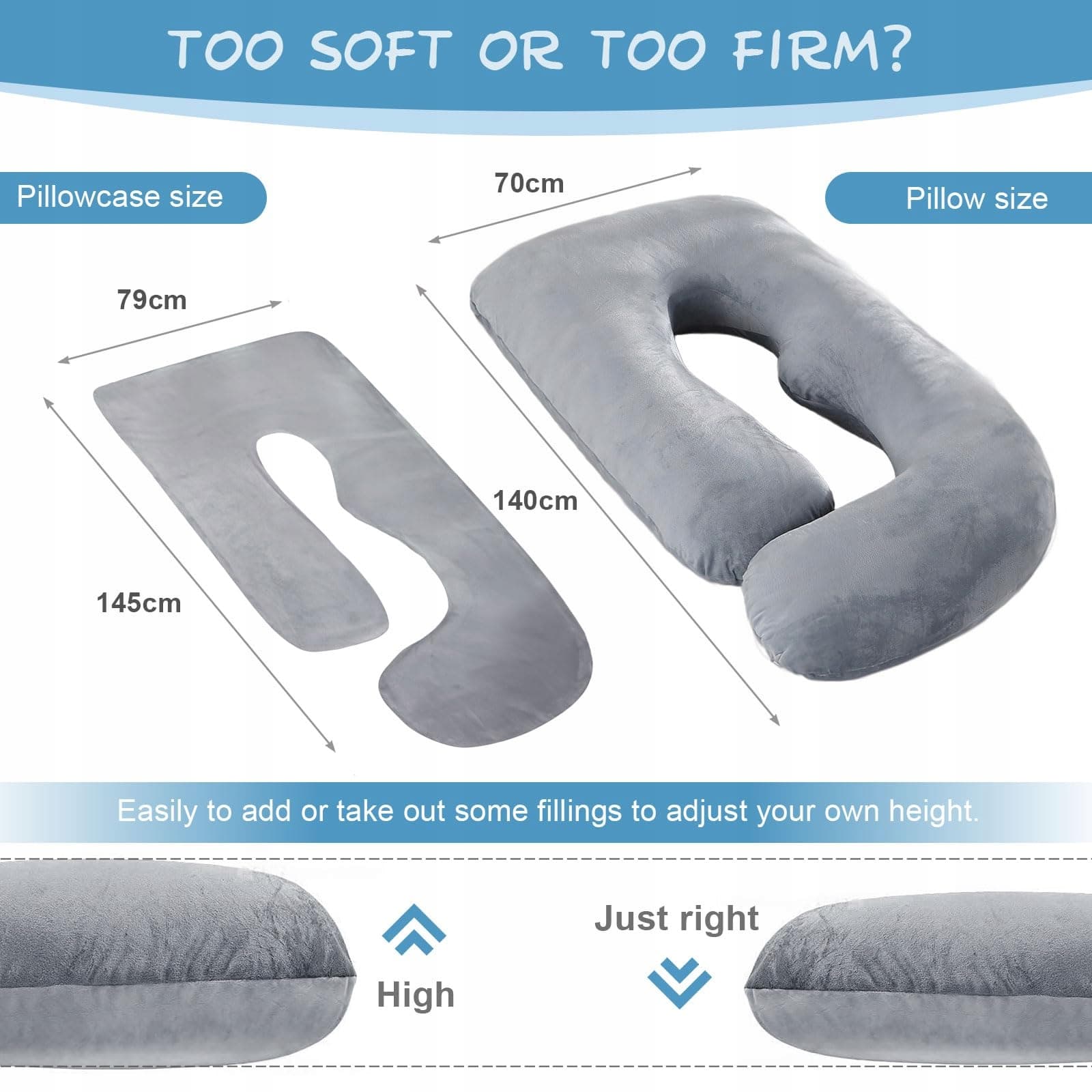 OTAUOAEA Poduszka Ciążowa J Kształt Całkowita Poduszka 145x70cm Szara