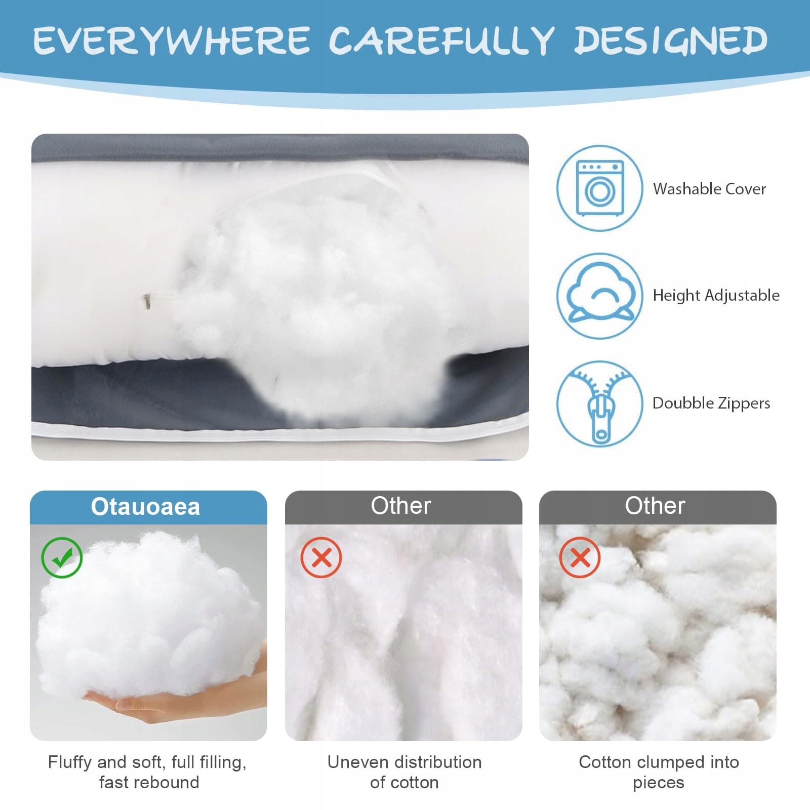 ✔[Praktyczny pokrowiec]Zewnętrzny projekt z zamkiem błyskawicznym sprawia, że pokrowiec na poduszkę jest nadający się do prania i zdejmowany. Pokrowiec zewnętrzny można prać w pralce w temperaturze 30ºC; wewnętrzny projekt z zamkiem błyskawicznym pozwala na wyjmowanie lub umieszczanie bawełny, co umożliwia dostosowanie wysokości i komfortu w dowolnym momencie.