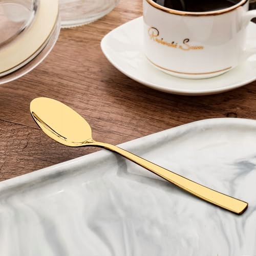 Ergonomiczny uchwyt: Złote łyżeczki do herbaty 12 sztuk oferują optymalny i wygodny chwyt. Te nierdzewne łyżeczki do kawy są wytrzymałe i trudne do wygięcia lub odkształcenia, co czyni je idealnymi codziennymi towarzyszami.