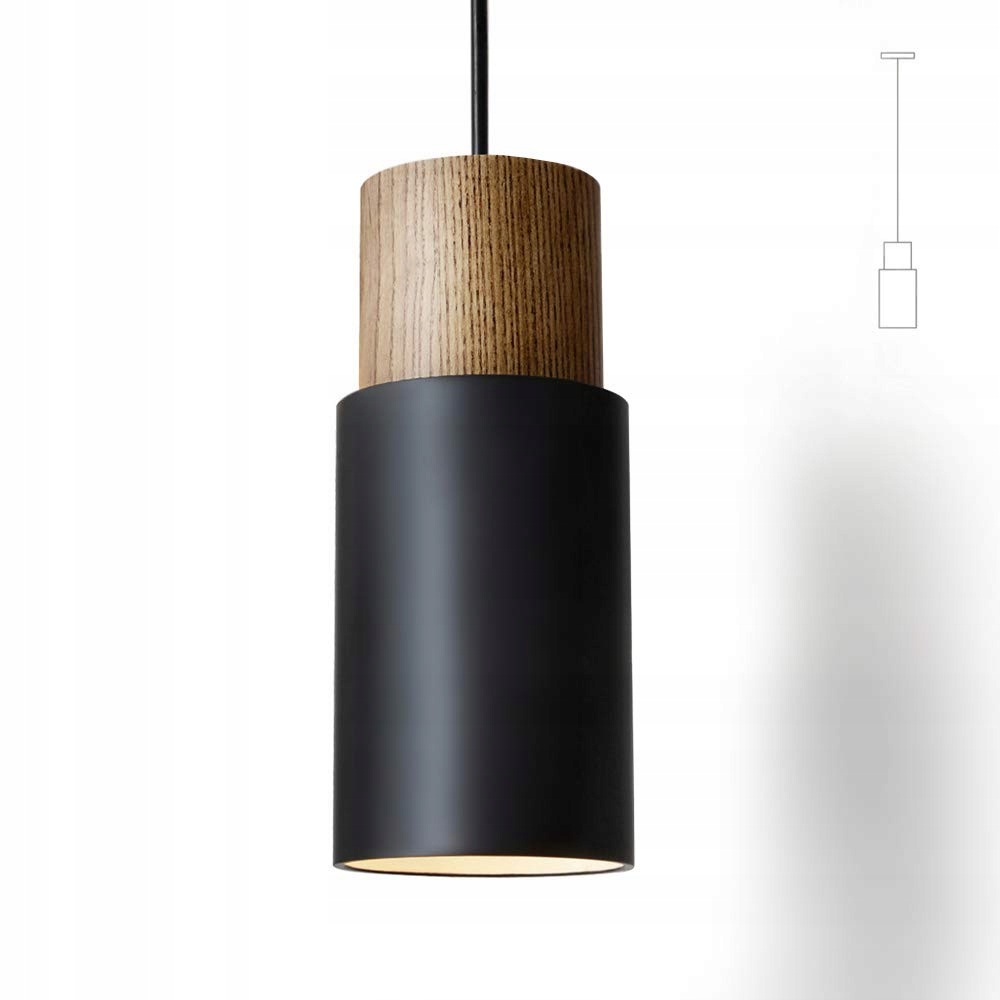 ouglres Lampa wisząca 1-płomienna Czarna, Vintage Cylinder Drewniana Lampa wisząca, Aluminium Industrialna Lampa wisząca E27 Źródło światła 60W do kuchni, stołu jadalnego, salonu, sypialni, restauracji, regulowana wysokość