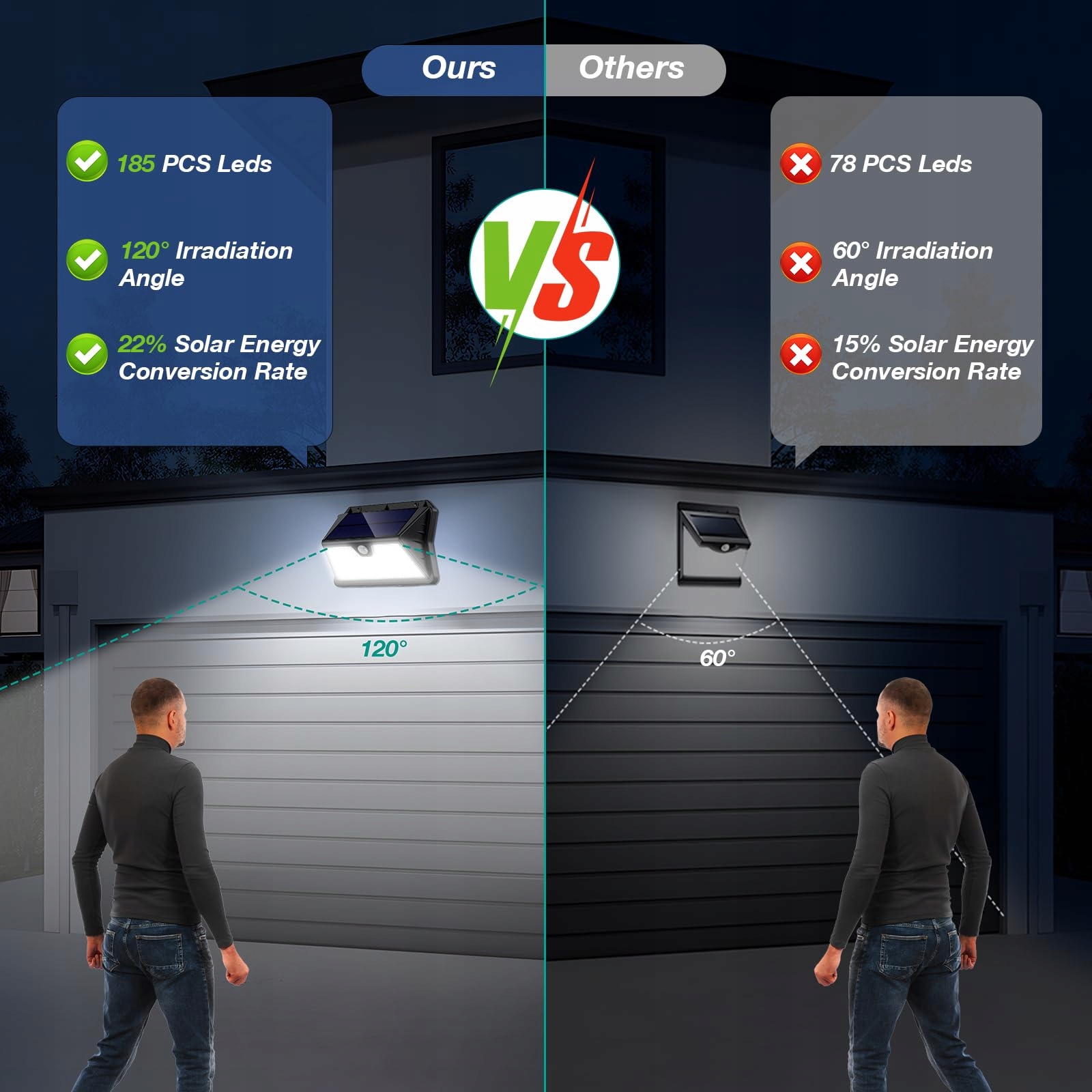 OUILA Lampy Solarne Zewnętrzne 185 LED 3 Tryby Czujnik Ruchu IP65