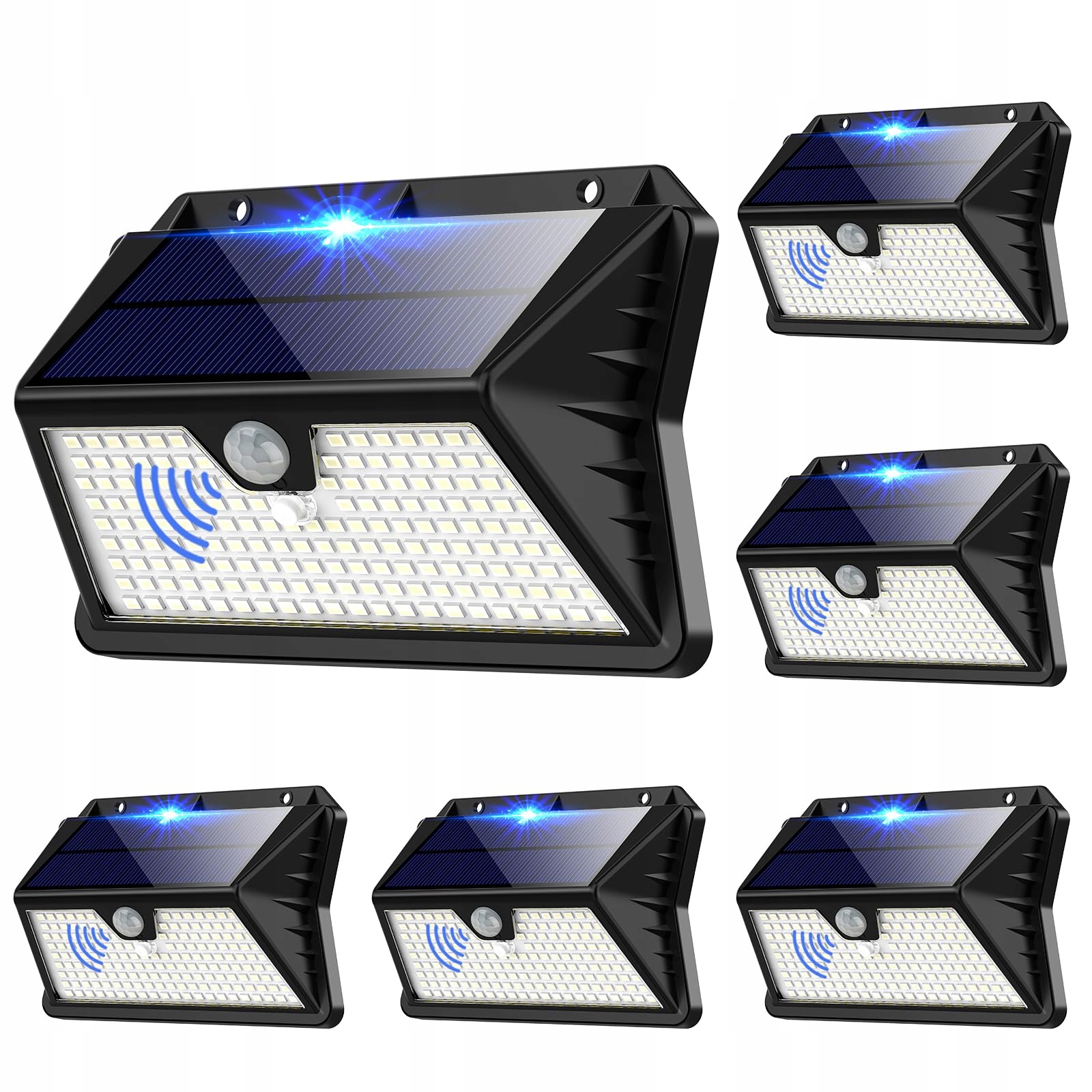 OUILA lampy solarne na zewnątrz, [6 sztuk] 185 LED 3 tryby solarne lampy zewnętrzne z czujnikiem ruchu 2200mAh, wodoodporne LED IP65, oświetlenie ścienne, ogród, podwórko, oświetlenie płotów, drzwi wejściowe