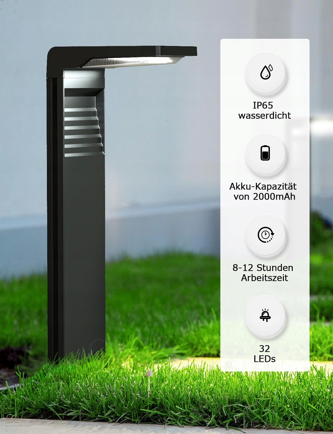 [2 temperatury barwowe]OUSFOT solarne lampy ścieżkowe do zewnątrz posiadają 2 temperatury barwowe: tryb światła białego (2500-3500k) i tryb światła ciepłego (6200-6800K). Solarne lampy ogrodowe są wyposażone w 32 zaawansowane diody LED. Nasze lampy solarne oferują najjaśniejsze światło w ciemności