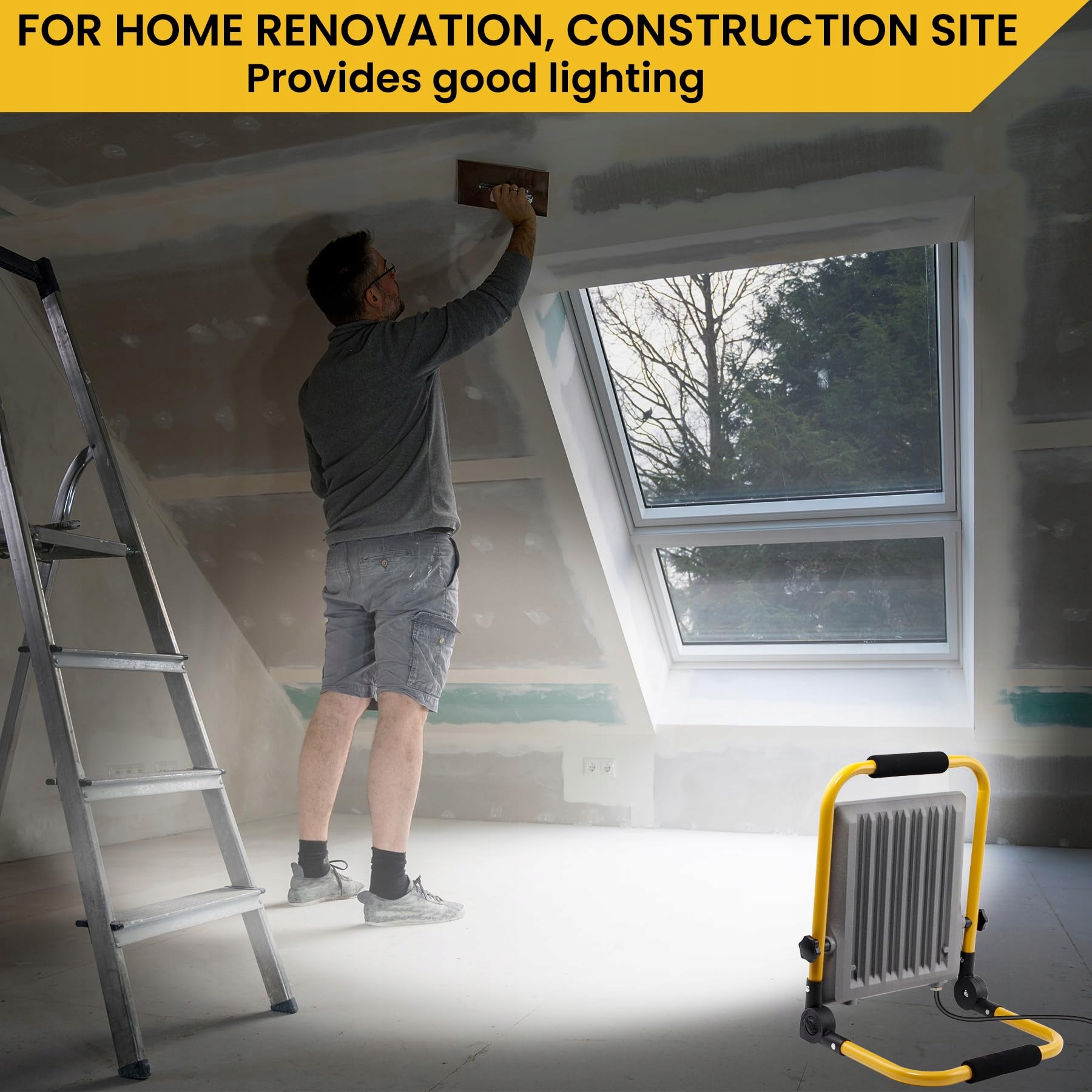 Jasny reflektor LED: Ten reflektor LED zapewnia jasność do 15 000 lumenów i temperaturę barwową 6500K w chłodnej bieli, co umożliwia efektywne oświetlenie dużych powierzchni roboczych i zwiększa wydajność pracy
