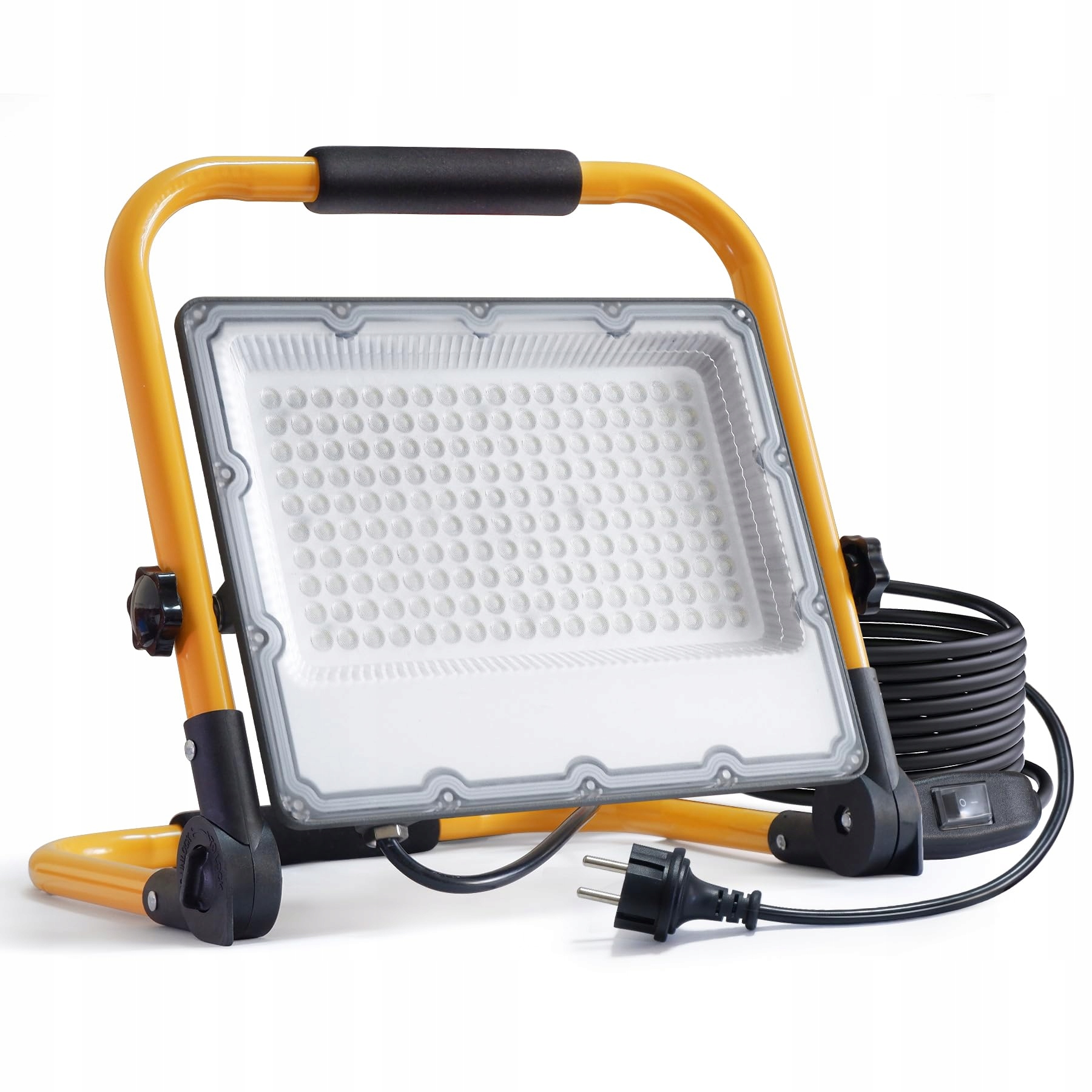 Przenośny i elastyczny design: Nasze reflektory LED z trójnogiem mają regulowany uchwyt, który umożliwia regulację kąta oświetlenia o 180 stopni w górę i w dół, co ułatwia dostosowanie kąta oświetlenia. Dodatkowo oferujemy wysokiej jakości wtyczkę Schuko i 4-metrowy kabel zasilający oraz przełącznik, co pozwala na podłączenie lampy do każdego standardowego gniazdka.